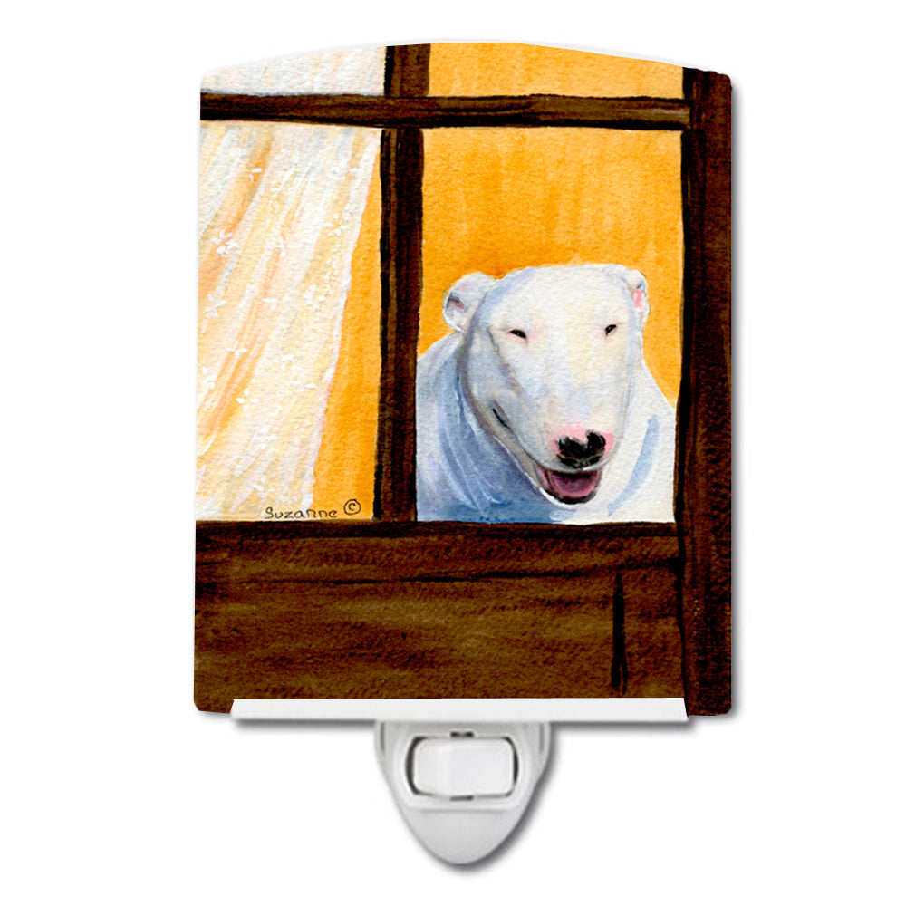 Decorate your space with our Bull Terrier artwork on a Night Light. Introduce a splash of artistic flair and subtle illumination to your space with the Decorative Ceramic Night Light from Caroline's Treasures. Perfect for any room, this night light seamlessly blends functionality with an aesthetic appeal, offering a stylish solution to brighten up dark corners of your home or office. Boasting a six-inch high by four-inch wide ceramic tile at the front, it showcases vivid, full-color artwork from distinguished artists, transforming a simple utility into a vibrant art piece. The artwork is securely encased in a robust metal holder, ensuring durability and longevity. Two screws are provided to firmly affix the tile into the holder. The holder extends three inches deep, housing an included bulb that emits a soft, welcoming glow. This product meets all safety standards, as evidenced by its UL approval. Proudly made in the United States from imported components, this Decorative Ceramic Night Light is not just a functional device; it's a statement piece that enhances the ambiance of your surroundings.