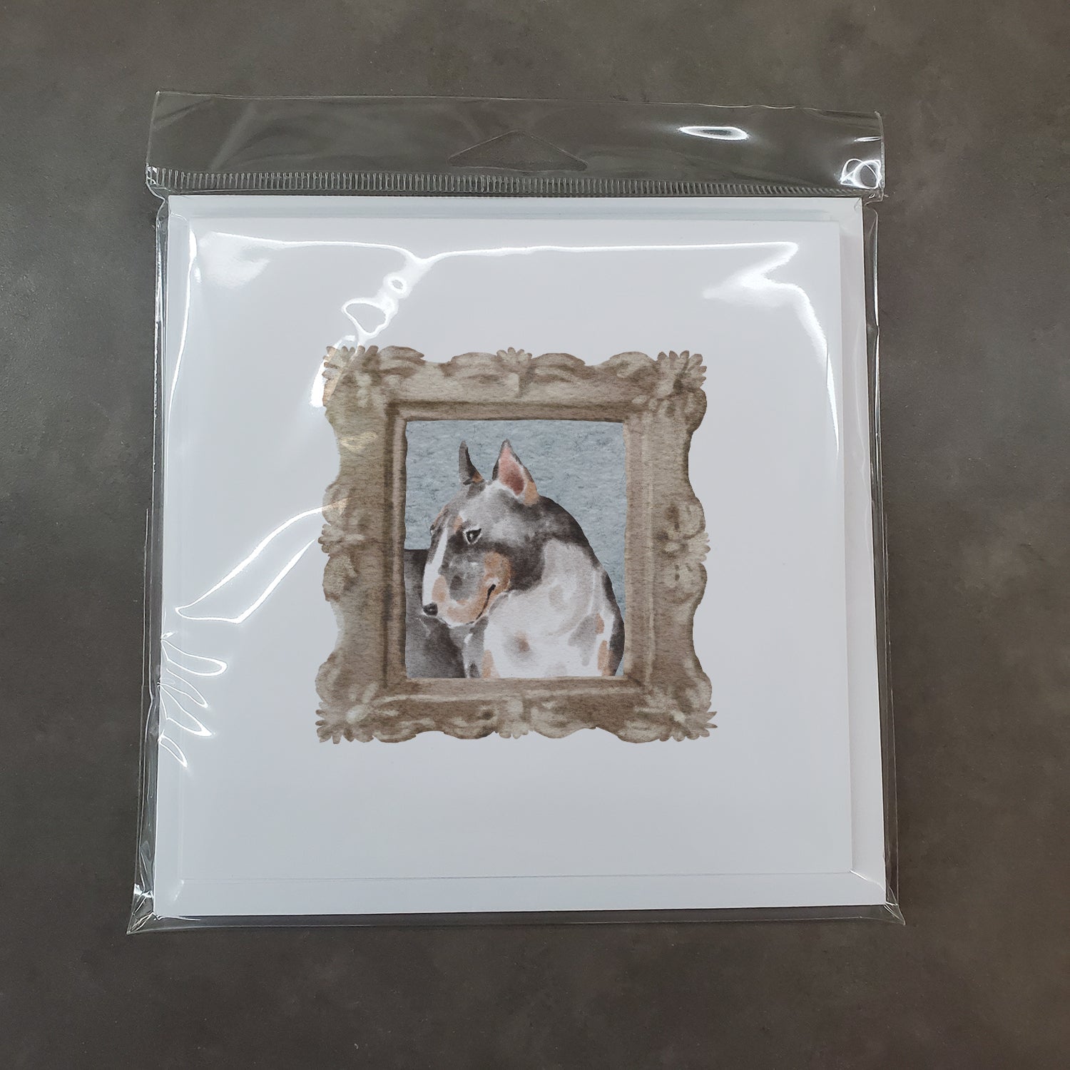 Decorate your space with our Bull Terrier artwork on a . Introduce a touch of elegance and personalization to your greetings with Caroline's Treasures Square Greeting Cards and Envelopes Pack. This pack includes eight beautifully folded 5x5 square note cards accompanied by eight matching white envelopes. With blank interiors, these cards provide the perfect canvas for your heartfelt messages, special notes, or holiday greetings. Each card showcases captivating full-color artwork, meticulously printed in our facility on high-quality 80 lb cover stock or 216 GSM. The super smooth finish of the white cards enhances the visual impact of the artwork, elevating the overall presentation. Created by our talented in-house artists or licensed artists, the artwork on these cards reflects their creativity and attention to detail. From vibrant illustrations to captivating designs, each card is a work of art that adds a touch of beauty to every sentiment shared. Whether it's for birthdays, special occasions, or holiday wishes, Caroline's Treasures Square Greeting Cards and Envelopes Pack is a versatile and thoughtful choice. Share your heartfelt sentiments with these exquisite cards, and make every message a cherished moment.
