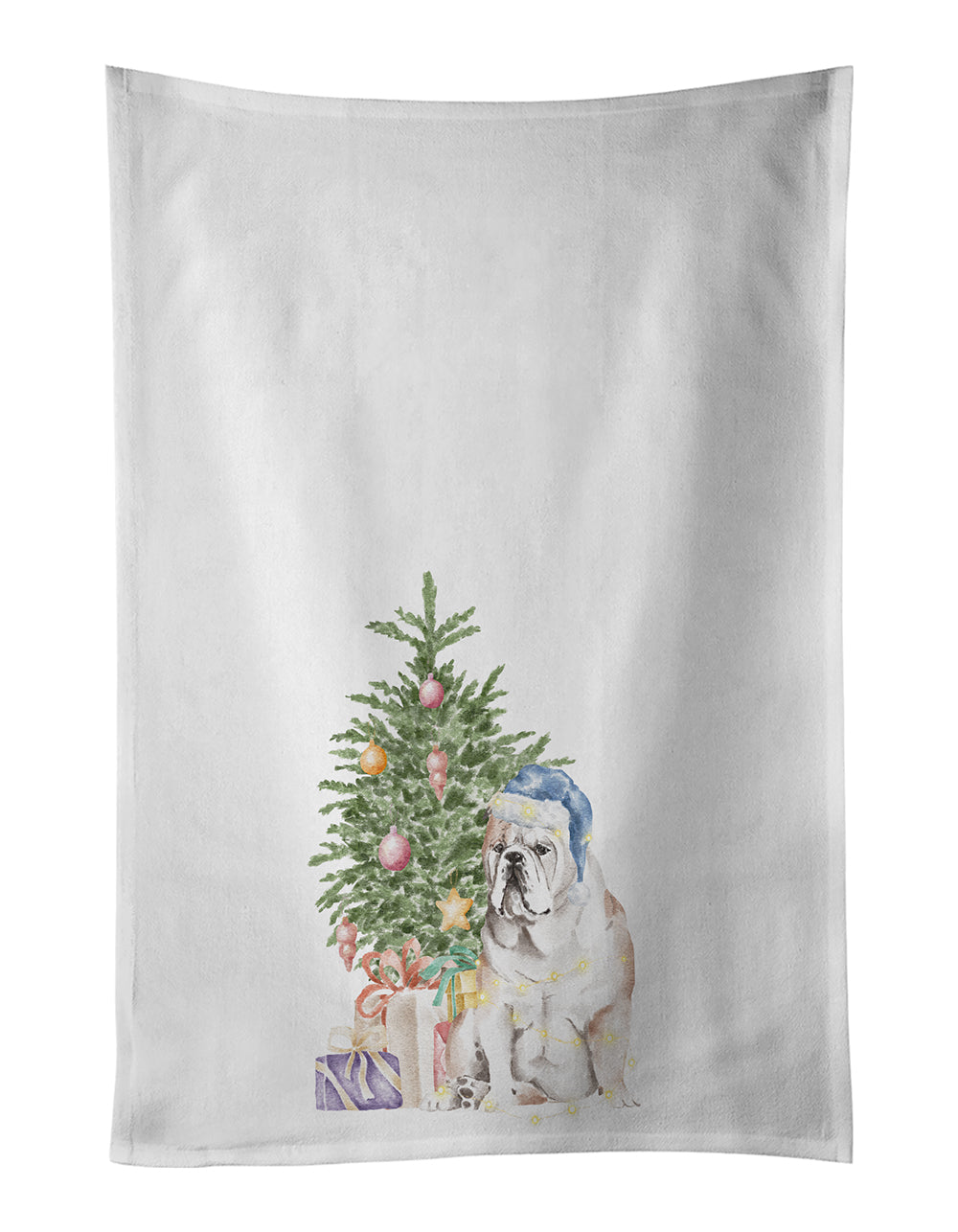 Decorate your space with our Christmas Bulldog, English Bulldog artwork on a Kitchen Cotton Towels. Spruce up your kitchen decor with Caroline's Treasures Decorative White Kitchen Towel Set. This set of two dish towels showcases beautiful artwork from one of our talented artists, making them both practical and visually appealing. These towels are crafted from 100% cotton, offering excellent absorbency and durability, making them ideal for any kitchen task. Each white towel measures 19 inches by 28 inches, providing ample coverage for drying dishes or wiping up spills. The standout feature of these towels is the full-color artwork design printed on each one. They can serve as a vibrant accent in your kitchen, turning a functional item into a delightful piece of decor. When it comes to care, these towels are machine washable in cold water and can be dried on low heat. Remember to always use a pressing cloth when pressing the design, and avoid using bleach on the decorated towel. The Decorative White Kitchen Towel Set makes a great gift or a stylish addition to your own kitchen.