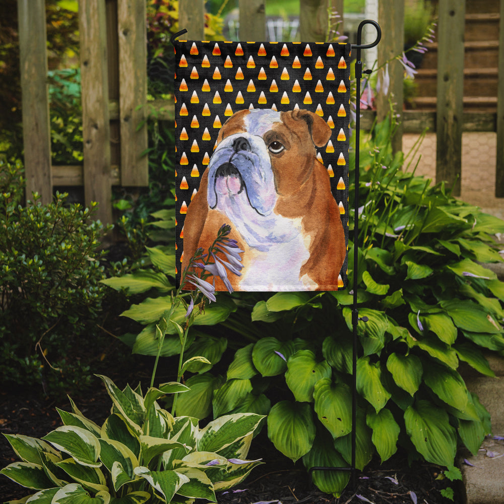 Decorate your space with our Halloween Bulldog, English Bulldog artwork on a Garden Flag. Enhance the beauty of your garden, patio, or yard with Caroline's Treasures Decorative Garden Flag, proudly made in the USA. Crafted from two pieces of thick, double-sided polyester fabric, this 2-ply garden flag is designed to withstand various weather conditions, making it water-resistant and weatherproof. Featuring correctly readable words on both sides, this garden flag offers a delightful visual experience from any angle. With its heavier weight, it stands out among other garden flags, ensuring stability and durability even in wind, rain, and snow. Measuring approximately 11 1/4 inches by 15 1/2 inches, this flag allows you to personalize your outdoor decor. It comes with a 1 1/2-inch sleeve sewn in, allowing easy attachment to any standard garden flag stand or garden size porch hanger (sold separately). Make a statement in your outdoor space with Caroline's Treasures Decorative Garden Flag, a vibrant and high-quality flag that adds color and personality to your surroundings. Proudly made in the USA, it's a symbol of quality craftsmanship and attention to detail.