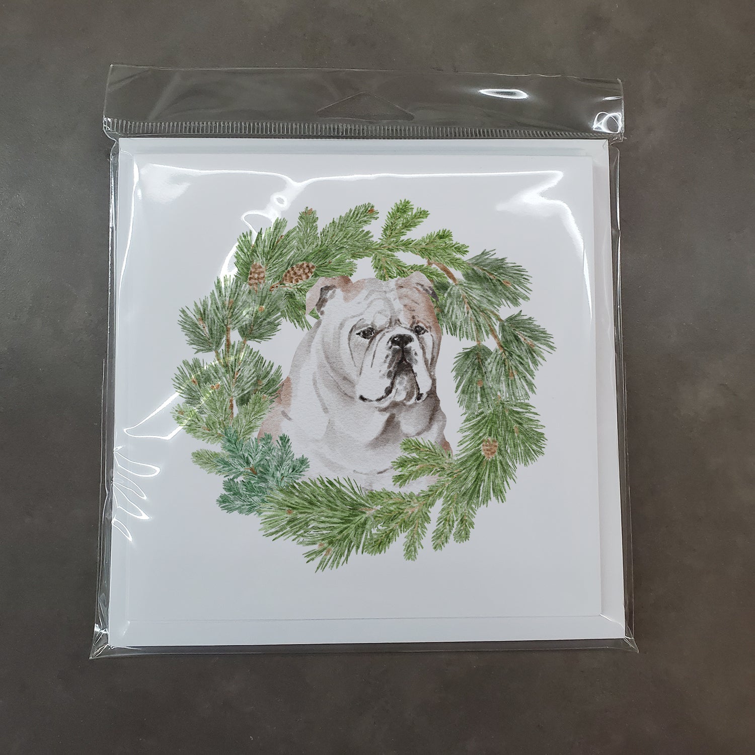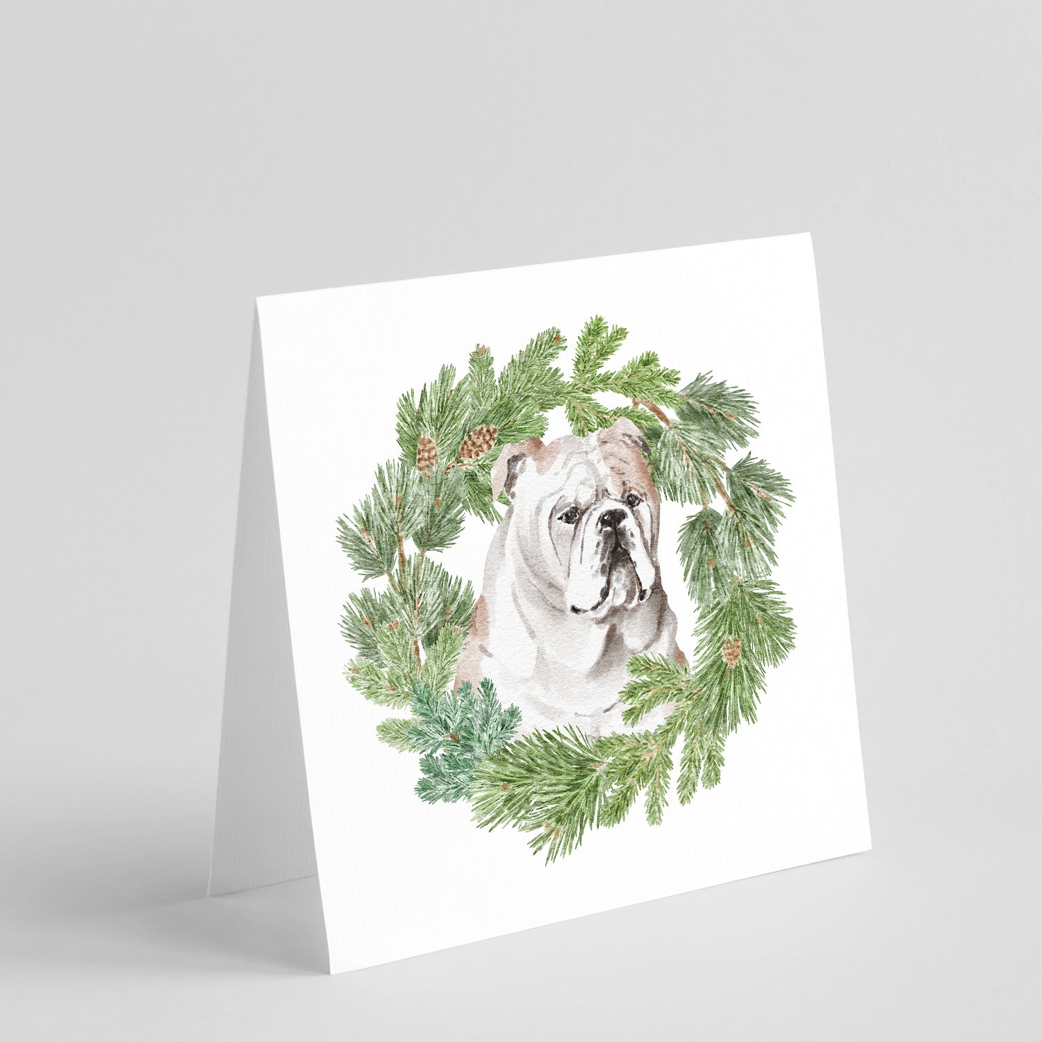Decorate your space with our Christmas Bulldog, English Bulldog artwork on a . Introduce a touch of elegance and personalization to your greetings with Caroline's Treasures Square Greeting Cards and Envelopes Pack. This pack includes eight beautifully folded 5x5 square note cards accompanied by eight matching white envelopes. With blank interiors, these cards provide the perfect canvas for your heartfelt messages, special notes, or holiday greetings. Each card showcases captivating full-color artwork, meticulously printed in our facility on high-quality 80 lb cover stock or 216 GSM. The super smooth finish of the white cards enhances the visual impact of the artwork, elevating the overall presentation. Created by our talented in-house artists or licensed artists, the artwork on these cards reflects their creativity and attention to detail. From vibrant illustrations to captivating designs, each card is a work of art that adds a touch of beauty to every sentiment shared. Whether it's for birthdays, special occasions, or holiday wishes, Caroline's Treasures Square Greeting Cards and Envelopes Pack is a versatile and thoughtful choice. Share your heartfelt sentiments with these exquisite cards, and make every message a cherished moment.