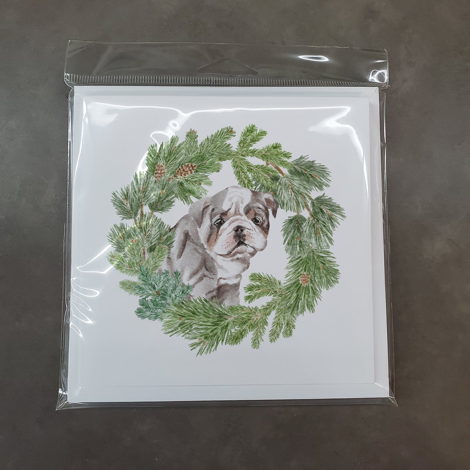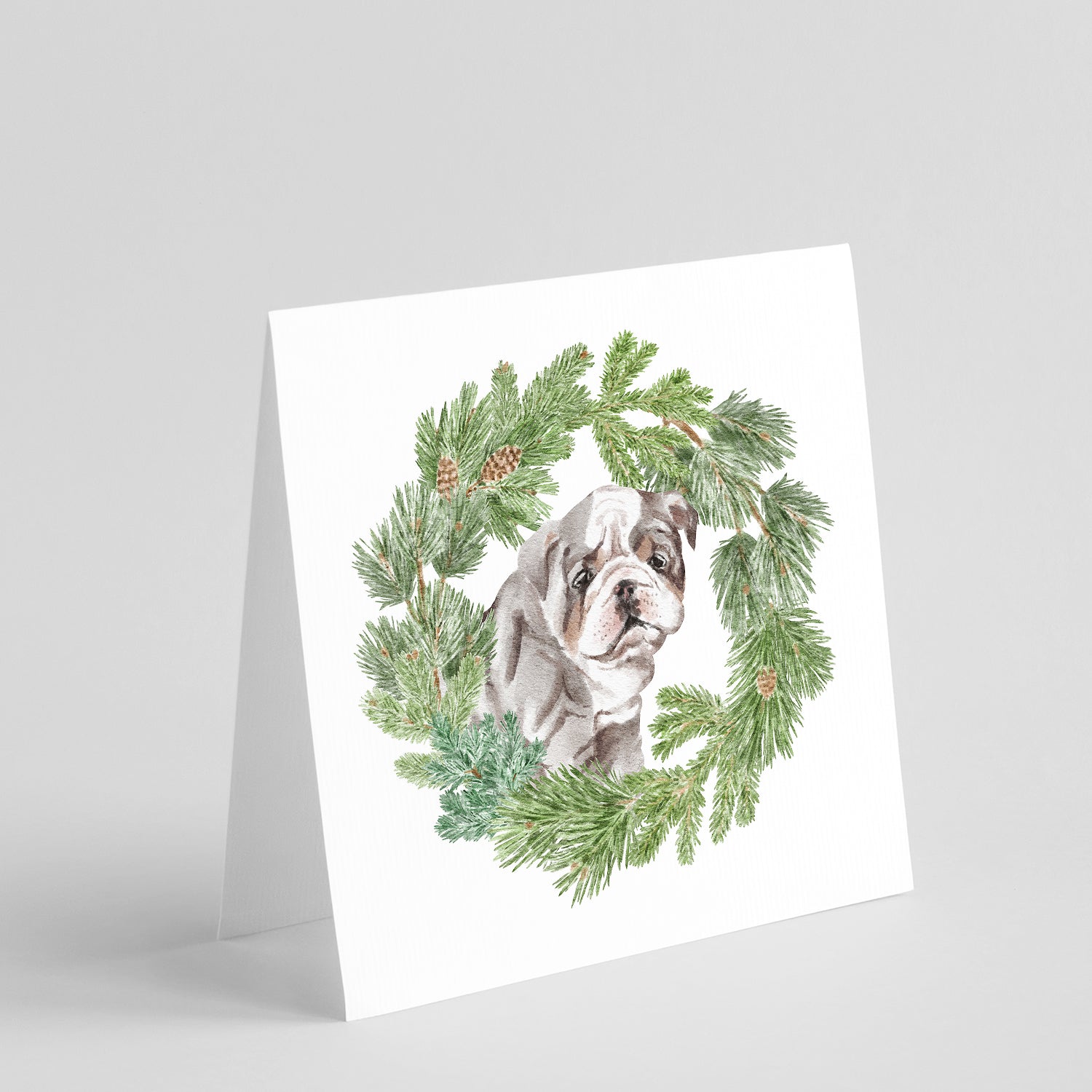 Bulldog Lilac Puppy with Christmas Wreath Square Greeting Cards -  Blank Note Cards – 8-Pack of Artist-Designed Cards with Envelopes