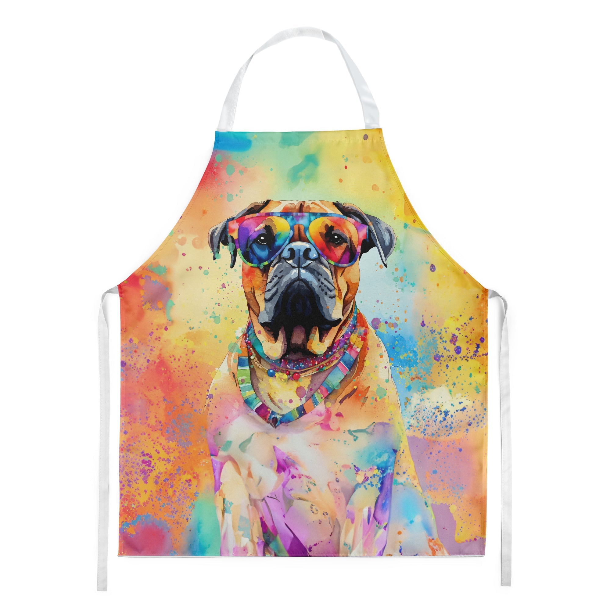 Decorate your space with our Bullmastiff artwork on a Apron. Bring a bit of Summer into your home with a Summer Apron. Elevate your cooking, baking, and grilling experiences with our versatile Kitchen or BBQ Apron. This Bib Style apron isn't just limited to culinary activities - it also serves as an excellent baking apron, artist apron, server apron, gardening apron, or even a dog grooming apron. The apron showcases vibrant full-color artwork contributed by one of our talented artists, bringing a dash of style to your daily tasks. With dimensions of approximately 27"W x 30"H, it provides ample coverage to protect your clothing from spills and splashes. Our apron is meticulously crafted from 100% Ultra Spun Polyester, known for its durability and lightweight nature. The apron comes with white tie straps, ensuring a comfortable and adjustable fit for all. It's a perfect choice for kitchen apron enthusiasts, whether you are a woman or a man. Designed for easy maintenance, this apron is fully machine washable. The quick-drying polyester material actively reduces staining, keeping your apron looking fresh and new for longer. Our beautifully designed apron isn't just a functional kitchen accessory - it's a fashion statement in the culinary world!