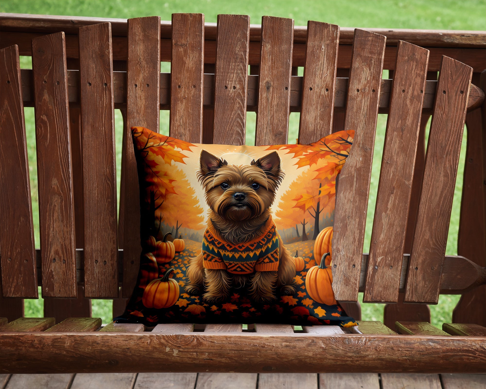 Decorate your space with our Cairn Terrier artwork on a Pillow. Bring a bit of Fall into your home with a Fall Pillow. Add a touch of vibrancy and comfort to your outdoor seating with Caroline's Treasures Fabric Decorative Pillow. Measuring approximately 14 inches by 14 inches, this outdoor pillow is crafted to elevate the appeal of your patio furniture, infusing it with vivid color and artistic flair. The pillow includes a 100% Polyester Fabric sham filled with a quality pillow form to provide superior comfort. Innovatively made from our brand new material, specifically woven for its water resistance, this pillow is designed for durability. The soft canvas fabric offers versatility in use, fit for your indoor couch or your outdoor patio, porch, or veranda. The fabric is dyed with colorfast dyes built for resilience against weather conditions, ensuring the pillow retains its beauty over time. Constructed by sewing three fabric pieces to create a sham, the polyester insert is then nestled inside to form the pillow, resulting in an overstuffed pillow that maintains its shape. Both the sham and the pillow insert are proudly made in the United States. As the pillows are handcrafted, there may be minor variations in size, further enhancing their unique charm. Experience comfort in style with Caroline's Treasures Fabric Decorative Pillow.