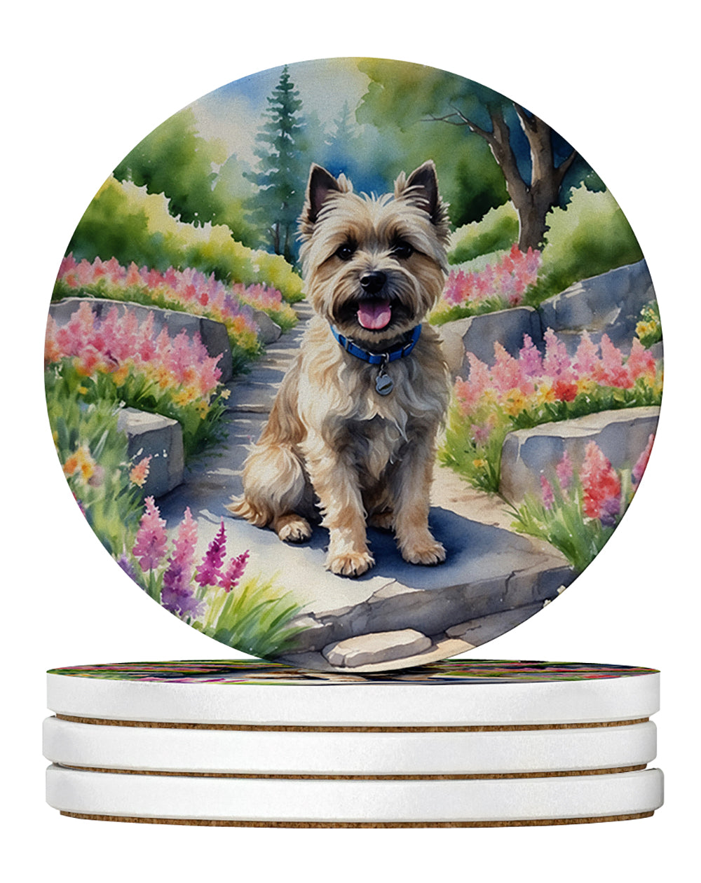 Large Sandstone Coasters Pack of 4 featuring breed specific Cairn Terrier artwork. Introducing Caroline's Treasures Large Sandstone Coasters Pack of 4, the perfect addition to your home decor. Each coaster measures nearly 4 inches and is made from absorbent sandstone with a cork backing. Designed and printed in the United States, these coasters feature artwork from Caroline's Treasures' talented artists. Protect your countertops and tables from hot and cold drink condensation with these absorbent coasters. They efficiently absorb moisture, ensuring your surfaces stay dry and clean. Choose from a wide range of designs to update and enhance your decor or give them as a thoughtful gift for any occasion. Cleaning is a breeze—simply wipe the coaster with a damp towel to remove any spills or stains. Each set comes in a brown gift box, making it ready to be wrapped for that special person in your life. These absorbent sandstone coasters also make an excellent housewarming gift, providing both practicality and style. Celebrate birthdays, Mother's Day, Father's Day, Thanksgiving, Christmas, Teacher's Appreciation Day, or simply show someone you care with these versatile and charming coasters. Caroline's Treasures Large Sandstone Coasters Pack of 4 is the perfect happy gift for any occasion.