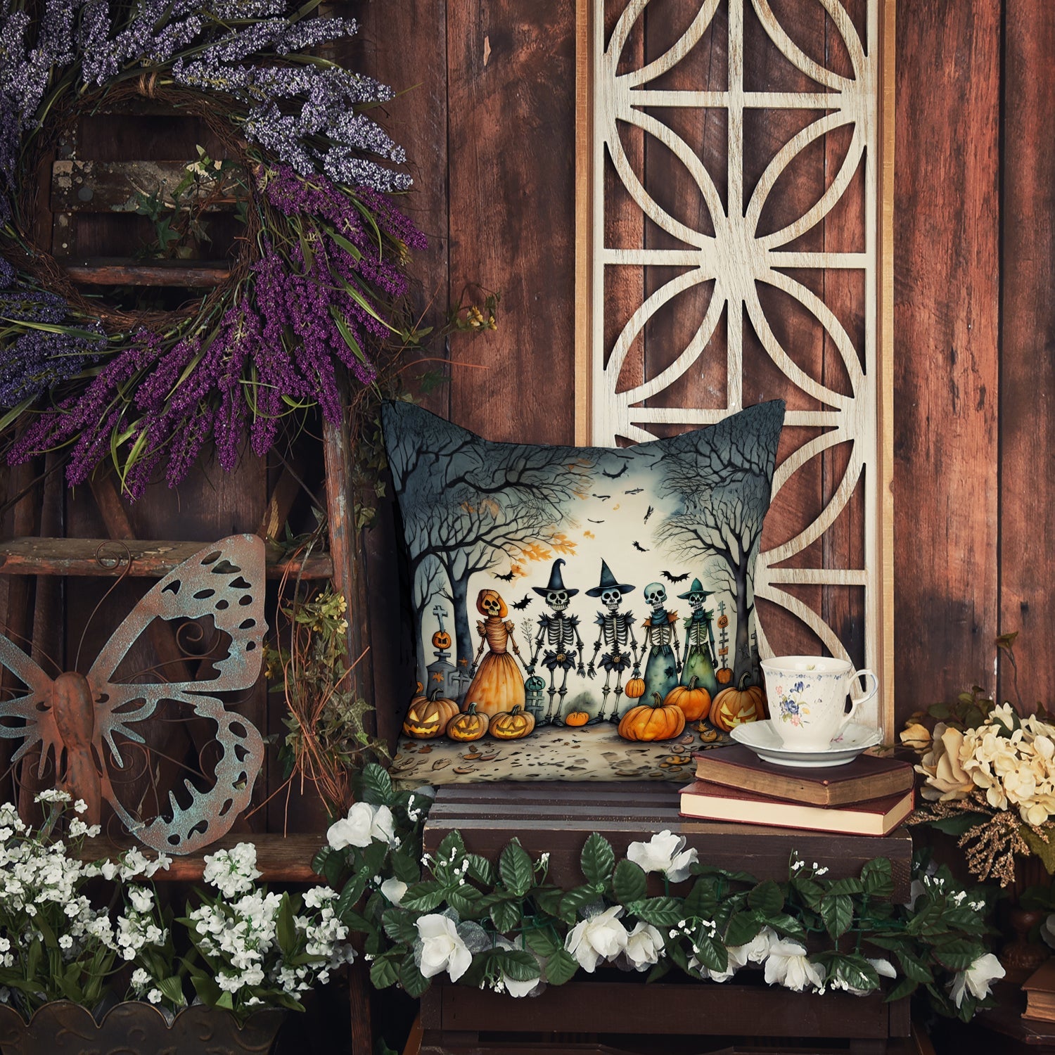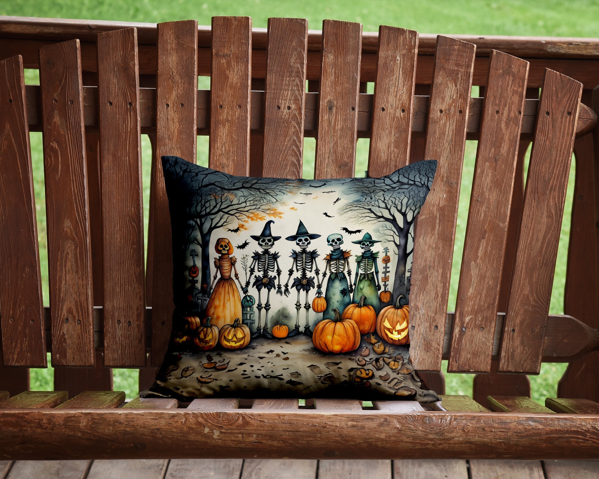Decorate your space with our Halloween artwork on a Pillow. Add a touch of vibrancy and comfort to your outdoor seating with Caroline's Treasures Fabric Decorative Pillow. Measuring approximately 14 inches by 14 inches, this outdoor pillow is crafted to elevate the appeal of your patio furniture, infusing it with vivid color and artistic flair. The pillow includes a 100% Polyester Fabric sham filled with a quality pillow form to provide superior comfort. Innovatively made from our brand new material, specifically woven for its water resistance, this pillow is designed for durability. The soft canvas fabric offers versatility in use, fit for your indoor couch or your outdoor patio, porch, or veranda. The fabric is dyed with colorfast dyes built for resilience against weather conditions, ensuring the pillow retains its beauty over time. Constructed by sewing three fabric pieces to create a sham, the polyester insert is then nestled inside to form the pillow, resulting in an overstuffed pillow that maintains its shape. Both the sham and the pillow insert are proudly made in the United States. As the pillows are handcrafted, there may be minor variations in size, further enhancing their unique charm. Experience comfort in style with Caroline's Treasures Fabric Decorative Pillow.