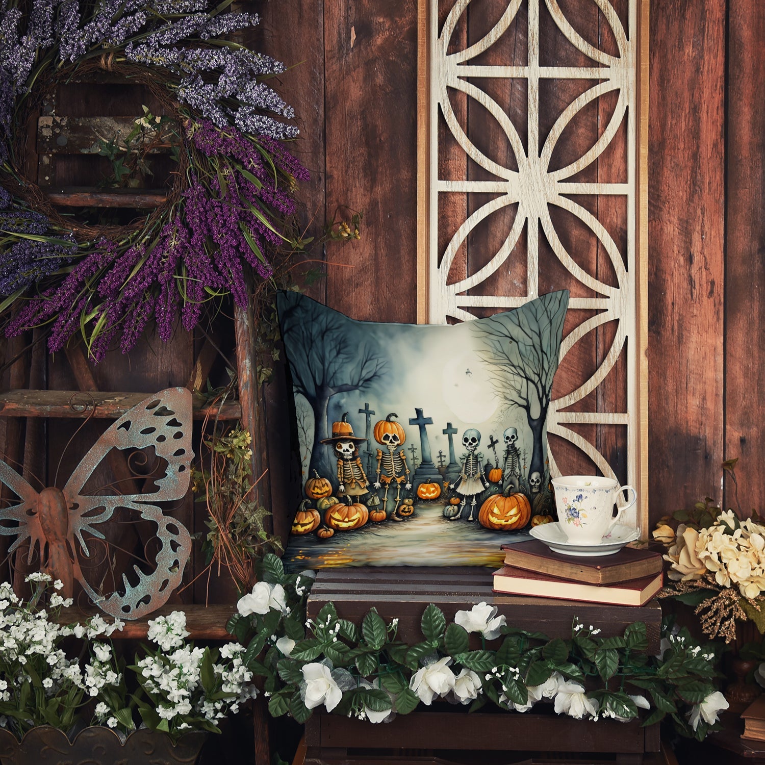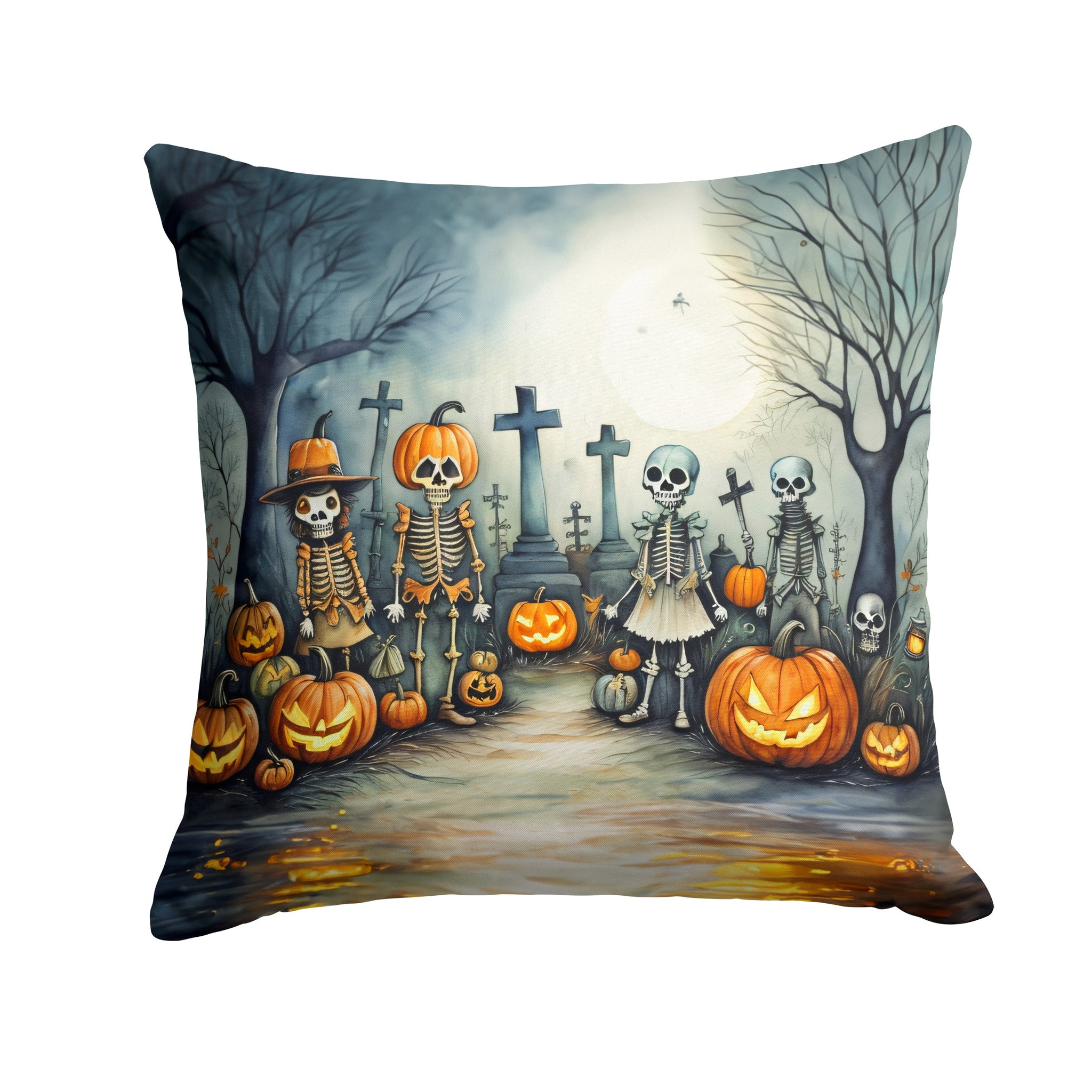 Decorate your space with our Halloween artwork on a Pillow. Add a touch of vibrancy and comfort to your outdoor seating with Caroline's Treasures Fabric Decorative Pillow. Measuring approximately 14 inches by 14 inches, this outdoor pillow is crafted to elevate the appeal of your patio furniture, infusing it with vivid color and artistic flair. The pillow includes a 100% Polyester Fabric sham filled with a quality pillow form to provide superior comfort. Innovatively made from our brand new material, specifically woven for its water resistance, this pillow is designed for durability. The soft canvas fabric offers versatility in use, fit for your indoor couch or your outdoor patio, porch, or veranda. The fabric is dyed with colorfast dyes built for resilience against weather conditions, ensuring the pillow retains its beauty over time. Constructed by sewing three fabric pieces to create a sham, the polyester insert is then nestled inside to form the pillow, resulting in an overstuffed pillow that maintains its shape. Both the sham and the pillow insert are proudly made in the United States. As the pillows are handcrafted, there may be minor variations in size, further enhancing their unique charm. Experience comfort in style with Caroline's Treasures Fabric Decorative Pillow.