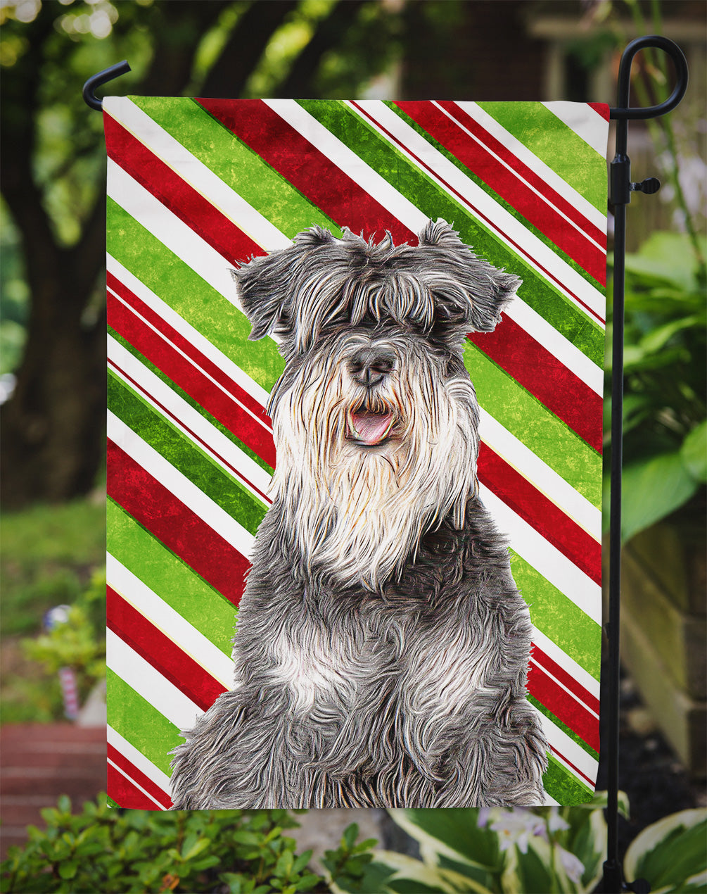 Candy Cane Holiday Christmas Schnauzer Garden Flag – Decorative Outdoor Yard Flag KJ1171GF