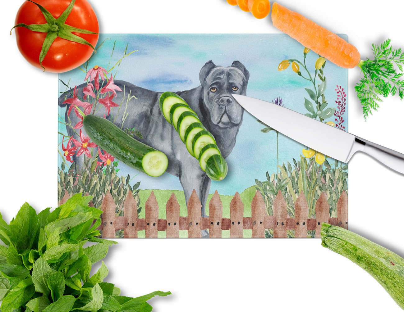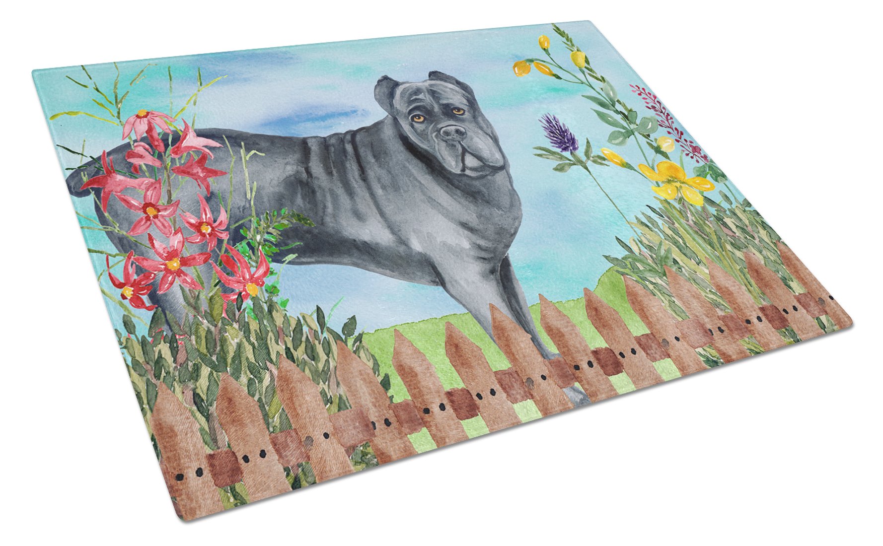 Decorate your space with our Cane Corso artwork on a Cutting Board. Bring a bit of Spring into your home with a Spring Cutting Board. Introduce your kitchen to the vibrant, large Decorative Glass Cutting Board from Caroline's Treasures. Crafted from resilient tempered glass, this board is not only a utilitarian necessity but also a colorful art piece. With its generous dimensions of 15 inches in height and 12 inches in length, it offers ample space for all your cutting needs. Every piece showcases captivating artwork from distinguished artists, bringing an aesthetic edge to your kitchen. Beyond its attractive design, this cutting board ensures your countertop stays pristine and unscathed, owing to its heat-resistant properties. Engineered with user convenience in mind, it features non-skid feet for stability, and rounded corners for additional safety. Its robust construction renders it virtually unbreakable, guaranteeing longevity. The board comes with protective feet bumpers, maintaining its position during use. This product is recommended to be hand washed only. Proudly printed and assembled in the United States, this cutting board exemplifies superior craftsmanship. With Caroline's Treasures' Decorative Glass Cutting Board, you're investing in a blend of functionality and artistic flair.