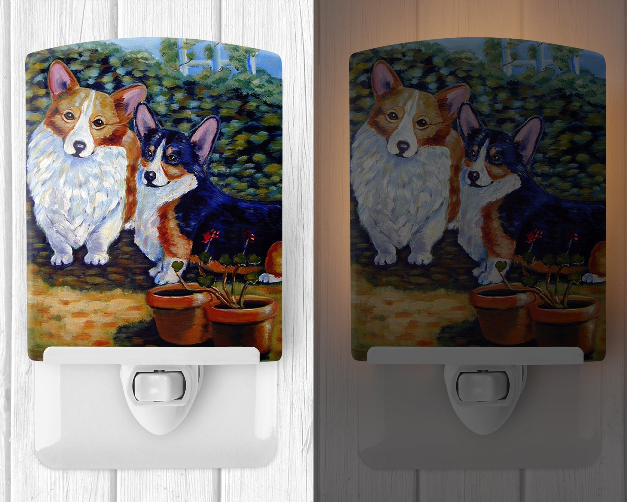 Decorate your space with our Corgi artwork on a Night Light. Introduce a splash of artistic flair and subtle illumination to your space with the Decorative Ceramic Night Light from Caroline's Treasures. Perfect for any room, this night light seamlessly blends functionality with an aesthetic appeal, offering a stylish solution to brighten up dark corners of your home or office. Boasting a six-inch high by four-inch wide ceramic tile at the front, it showcases vivid, full-color artwork from distinguished artists, transforming a simple utility into a vibrant art piece. The artwork is securely encased in a robust metal holder, ensuring durability and longevity. Two screws are provided to firmly affix the tile into the holder. The holder extends three inches deep, housing an included bulb that emits a soft, welcoming glow. This product meets all safety standards, as evidenced by its UL approval. Proudly made in the United States from imported components, this Decorative Ceramic Night Light is not just a functional device; it's a statement piece that enhances the ambiance of your surroundings.