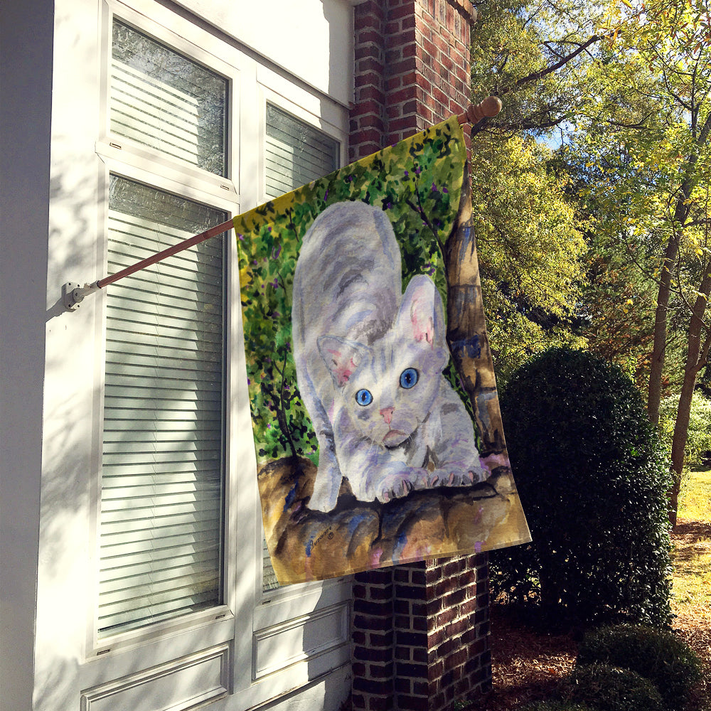 Decorate your space with our Devon Rex artwork on a Large Flag. Presenting our Heavy Duty Polyester House Size Decorative Sleeve Pole Flag, a vibrant addition to enhance the aesthetic appeal of your home. This large decorative flag, measuring approximately 28 x 40 inches, offers ample coverage and visibility. Each flag is meticulously sewn and made individually, ensuring a unique piece that may slightly vary in size. It's a sleeve pole flag, designed to fit a standard decorative flag pole effortlessly. Please note that the flag pole and bracket are not included and should be purchased separately. What sets our flag apart is its dual-sided print. The design is mirrored on both sides of the fabric, allowing for uniform visibility regardless of the angle. Printed in full color, our flag showcases vibrant hues that truly stand out. To ensure lasting vibrancy and durability, the dyes are heat-set into the fabric. This ensures your flag remains bright and captivating through various weather conditions. Elevate the look of your home with our Heavy Duty Polyester House Size Decorative Sleeve Pole Flag!