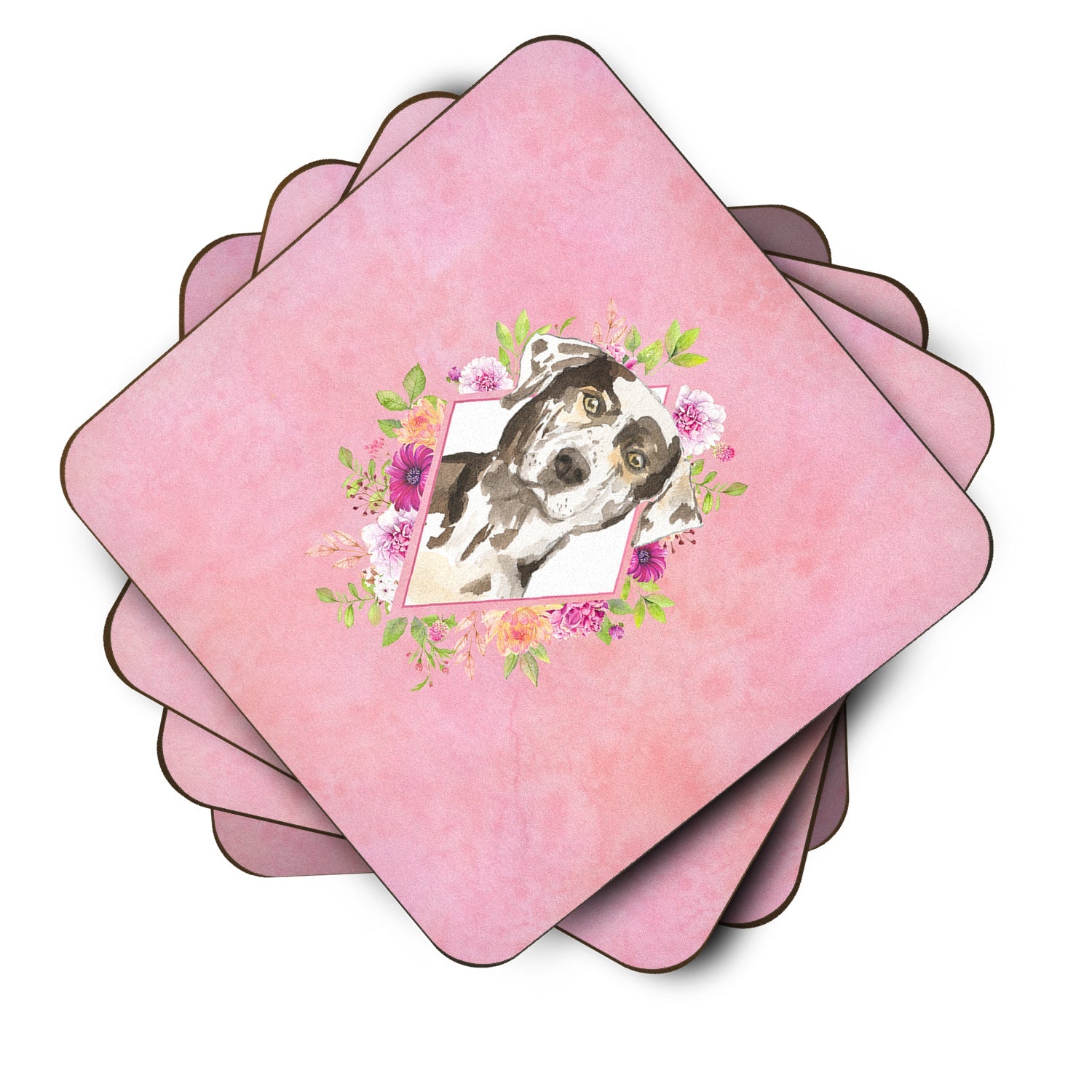 Decorate your space with our Catahoula Leopard Dog artwork on a Coaster set. Presenting our Set of 4 Foam Coasters, a stylish and practical addition to your table setting. Each square coaster, measuring 3 1/2 inches by 3 1/2 inches, is perfectly sized to accommodate various drinkware, from coffee mugs to tumblers. These coasters stand out with their full-color artwork, permanently dyed onto the material for a vibrant and fade-resistant finish. They're not just functional, they're a fashionable statement, adding a touch of flair to any gathering or event. Our foam coasters serve a dual purpose - they protect your table from water stains and are perfect for both hot and cold drinks. The material used is similar to that of our high-quality mouse pads, ensuring durability and heat resistance. These coasters are easy to maintain - simply wash them in the top of your dishwasher and lay flat to dry. The design won't come off, ensuring they retain their vivid colors for years. Pair them with one of our insulated coolers or huggers for a cohesive, thoughtful gift set. Enhance your beverage experience with our Set of 4 Foam Coasters.