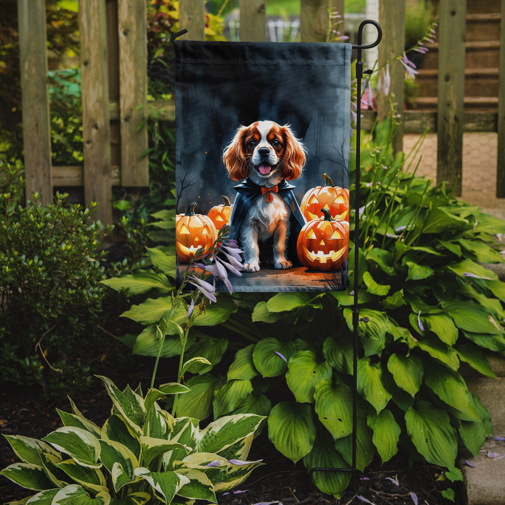 Garden Flag featuring breed specific Cavalier King Charles Spaniel artwork. Celebrate Halloween with this Halloween Garden Flag. Enhance the beauty of your garden, patio, or yard with Caroline's Treasures Decorative Garden Flag, proudly made in the USA. Crafted from two pieces of thick, double-sided polyester fabric, this 2-ply garden flag is designed to withstand various weather conditions, making it water-resistant and weatherproof. Featuring correctly readable words on both sides, this garden flag offers a delightful visual experience from any angle. With its heavier weight, it stands out among other garden flags, ensuring stability and durability even in wind, rain, and snow. Measuring approximately 11 1/4 inches by 15 1/2 inches, this flag allows you to personalize your outdoor decor. It comes with a 1 1/2-inch sleeve sewn in, allowing easy attachment to any standard garden flag stand or garden size porch hanger (sold separately). Make a statement in your outdoor space with Caroline's Treasures Decorative Garden Flag, a vibrant and high-quality flag that adds color and personality to your surroundings. Proudly made in the USA, it's a symbol of quality craftsmanship and attention to detail.