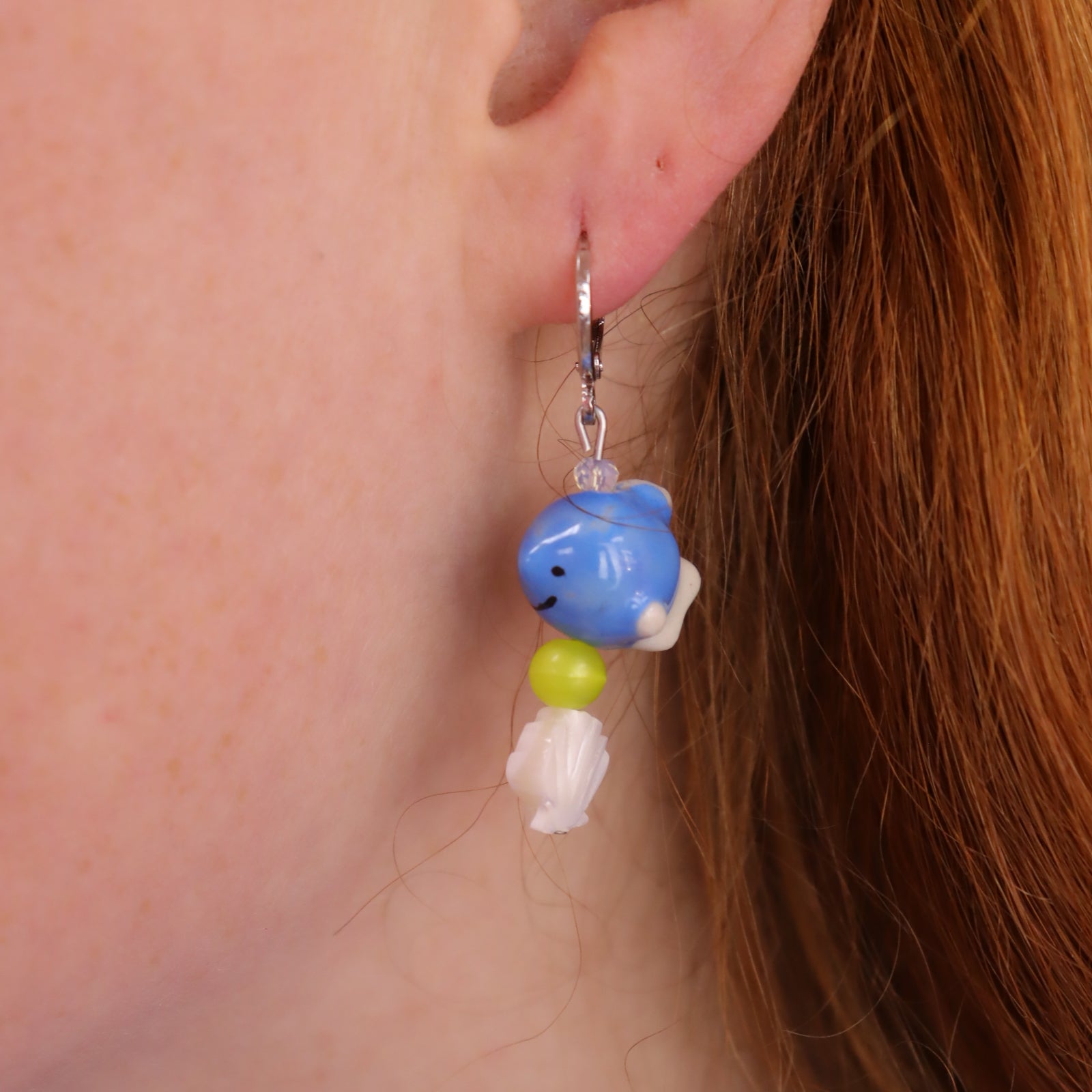 Get hooked on these Porcelain Fish Earrings! Featuring a friendly blue fish with a shell accent, these earrings are a playful addition to any outfit.