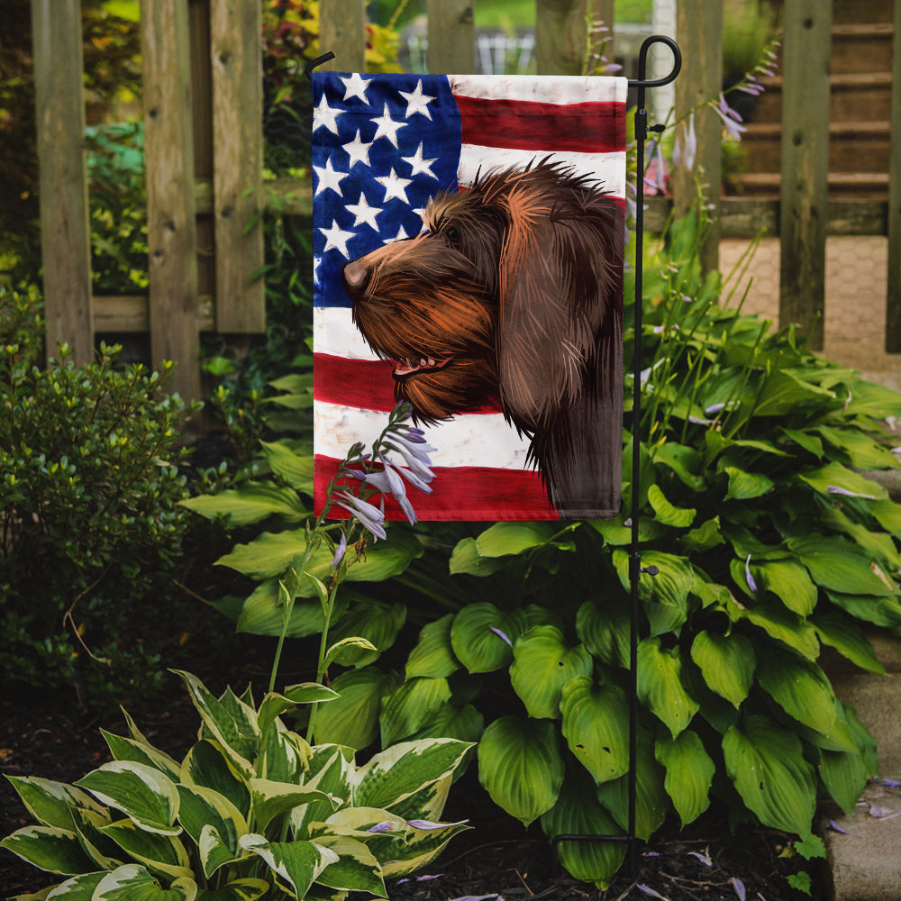 Decorate your space with our Cesky Fousek artwork on a Garden Flag. Enhance the beauty of your garden, patio, or yard with Caroline's Treasures Decorative Garden Flag, proudly made in the USA. Crafted from two pieces of thick, double-sided polyester fabric, this 2-ply garden flag is designed to withstand various weather conditions, making it water-resistant and weatherproof. Featuring correctly readable words on both sides, this garden flag offers a delightful visual experience from any angle. With its heavier weight, it stands out among other garden flags, ensuring stability and durability even in wind, rain, and snow. Measuring approximately 11 1/4 inches by 15 1/2 inches, this flag allows you to personalize your outdoor decor. It comes with a 1 1/2-inch sleeve sewn in, allowing easy attachment to any standard garden flag stand or garden size porch hanger (sold separately). Make a statement in your outdoor space with Caroline's Treasures Decorative Garden Flag, a vibrant and high-quality flag that adds color and personality to your surroundings. Proudly made in the USA, it's a symbol of quality craftsmanship and attention to detail.