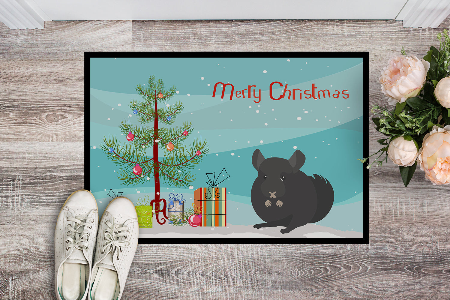 Decorate your space with our Christmas Charcoal Chinchilla artwork on a Doormat. Welcome your guests in style with our Artwork Door Mat, designed to withstand almost any weather condition. This mat, measuring approximately 18 by 27 inches, is held together by durable black binding tape. Its top layer, composed of polyester felt, is dyed with the eye-catching image you see on the mat. A few layers below provide the mat with stability, while its rubber bottom is stamped to help prevent slipping and ensures safety. Our mat works wonderfully as both an indoor or outdoor door mat. For cleaning, simply hose it off with water or use a power washer - no need for any cleaner that produces suds. Avoid scrubbing with a brush, instead, opt for the vacuum on floor setting. Designed manufactured and printed in the USA, this mat is a perfect addition to your porch, outdoor kitchen, entryway, or any indoor space. Its unique design makes it a charming decorative rug that greets your guests and adds a stylish touch to your home decor.