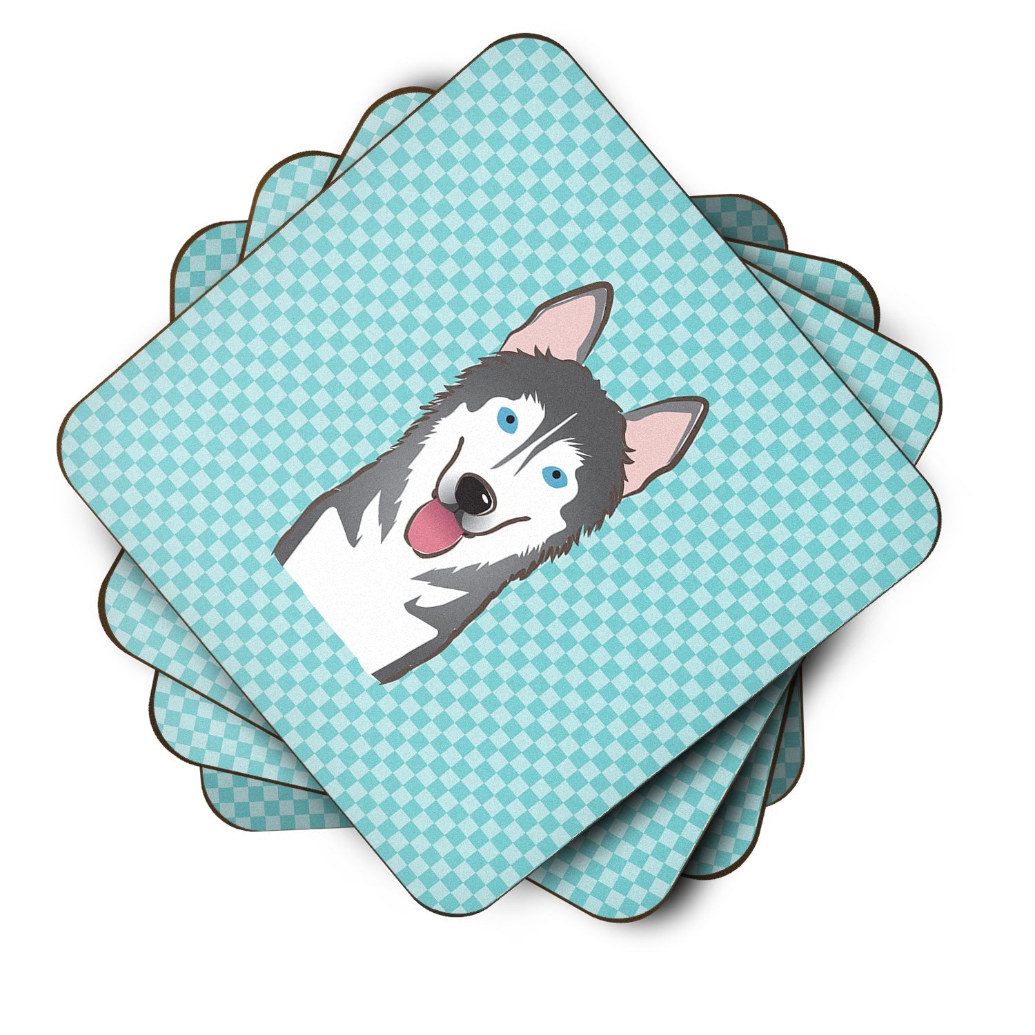 Checkerboard Blue Alaskan Malamute Coasters - Set of 4 Lightweight Foam, Absorbent Drink Coasters BB1156FC