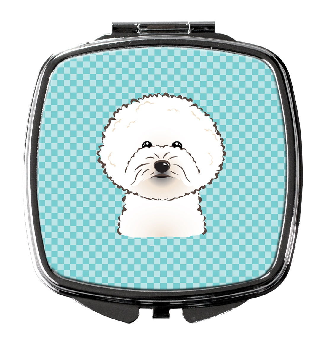 Checkerboard Blue Bichon Frise Compact Mirror – Stylish Purse Mirror with Artistic Covers BB1155SCM