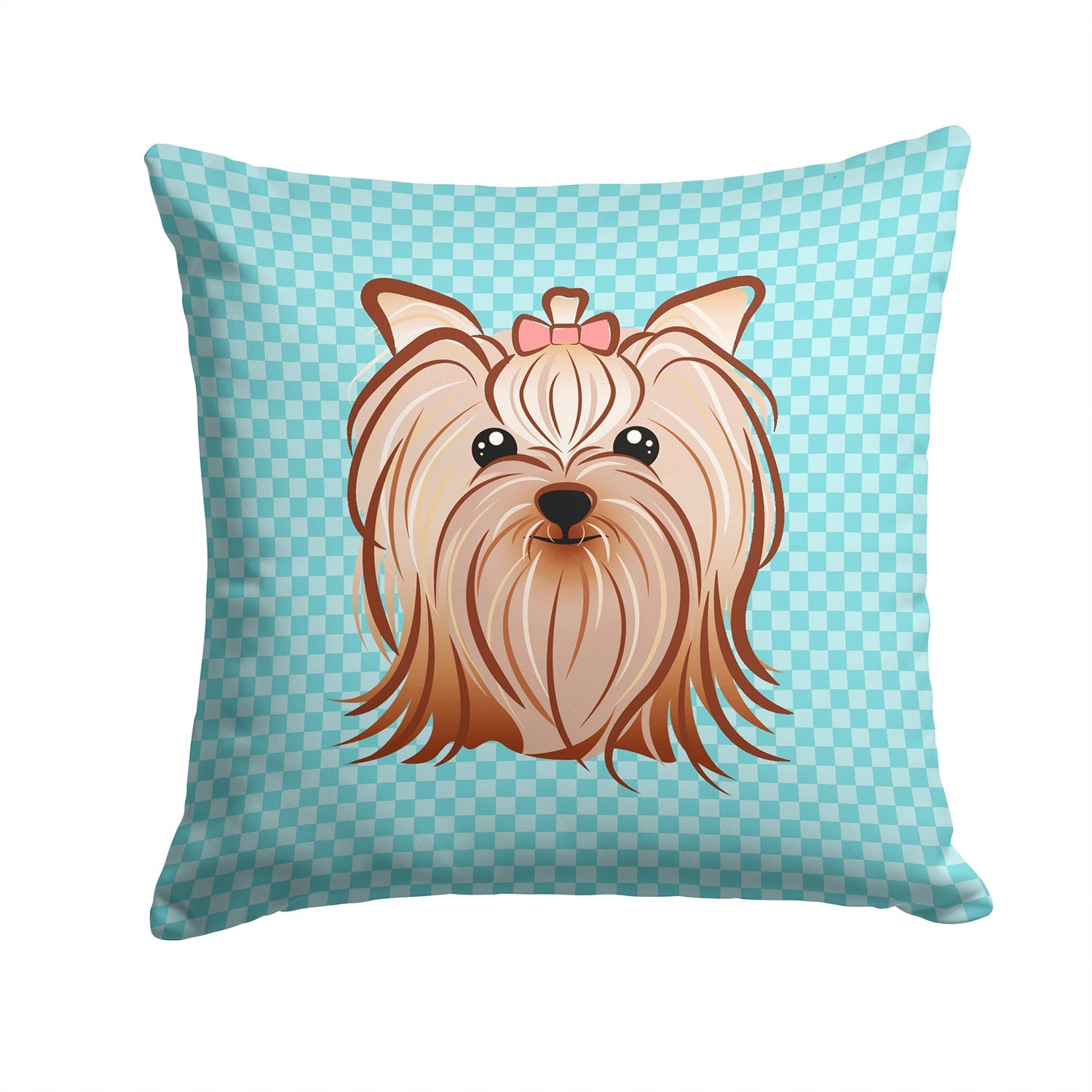 Checkerboard Blue Yorkie Yorkshire Terrier Canvas Throw Pillow - 14x14 Decorative Pillow – Art for Your Home & Patio BB1142PW1414