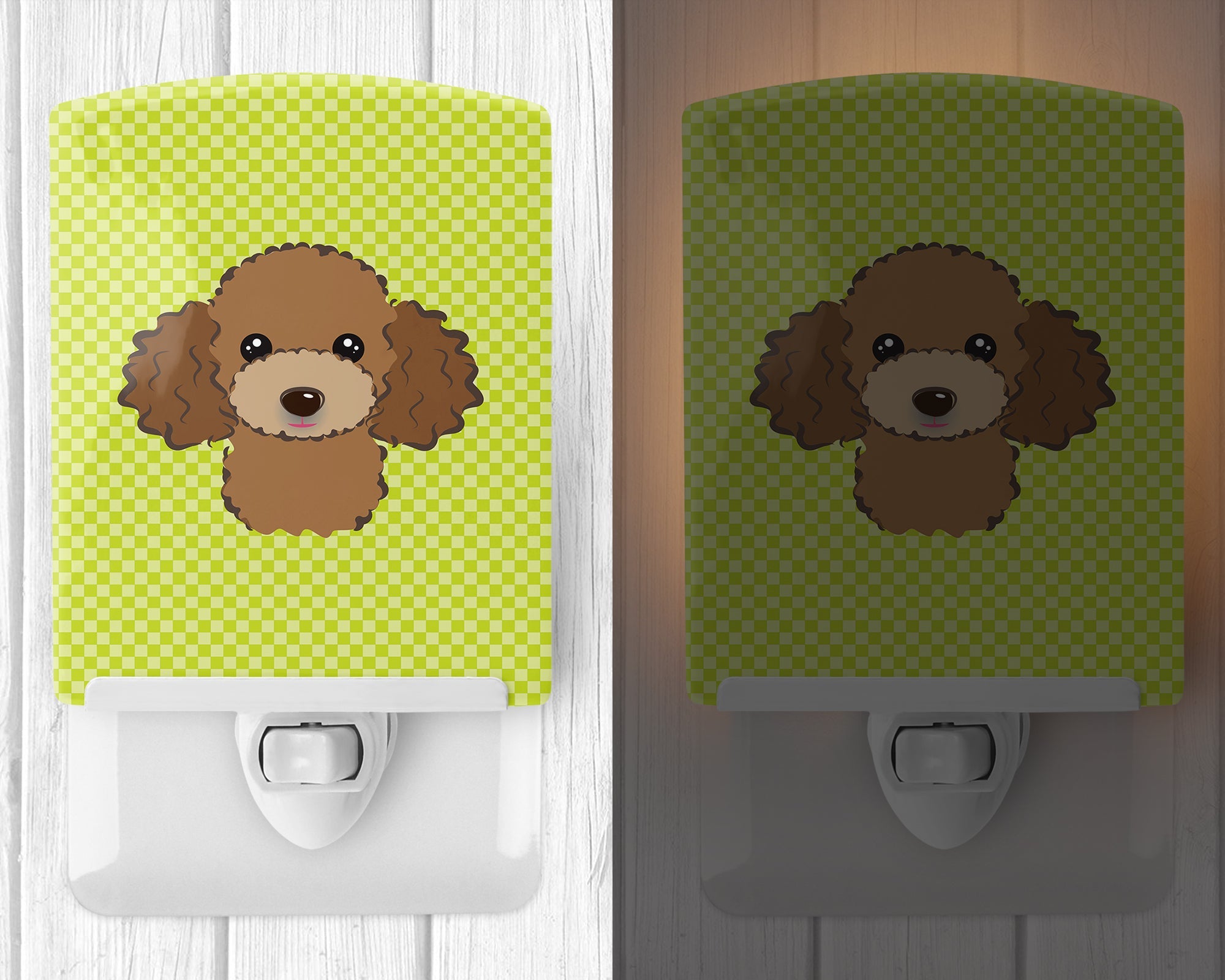 Checkerboard Lime Green Chocolate Brown Poodle Ceramic Night Light BB1318CNL