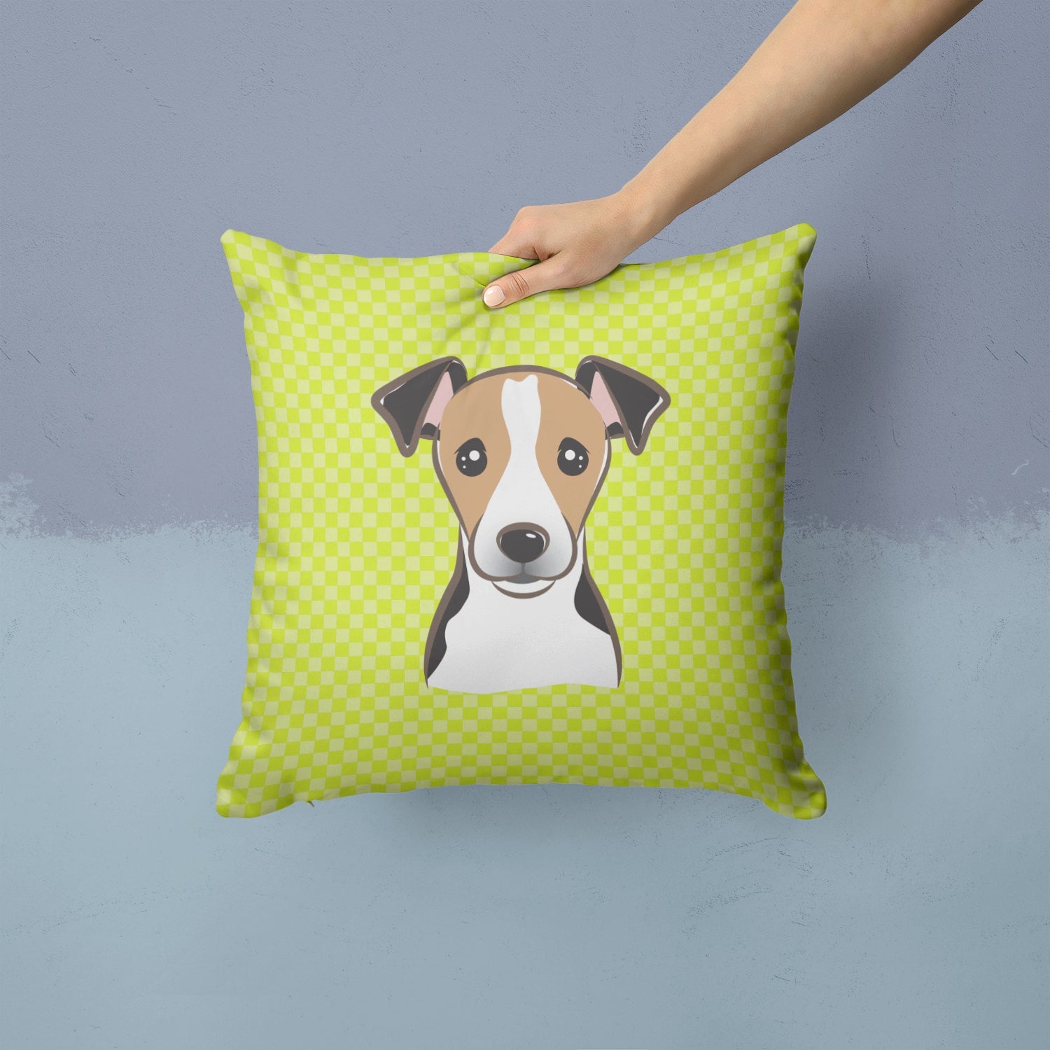 Checkerboard Lime Green Jack Russell Terrier Canvas Throw Pillow - 14x14 Decorative Pillow – Art for Your Home & Patio BB1323PW1414