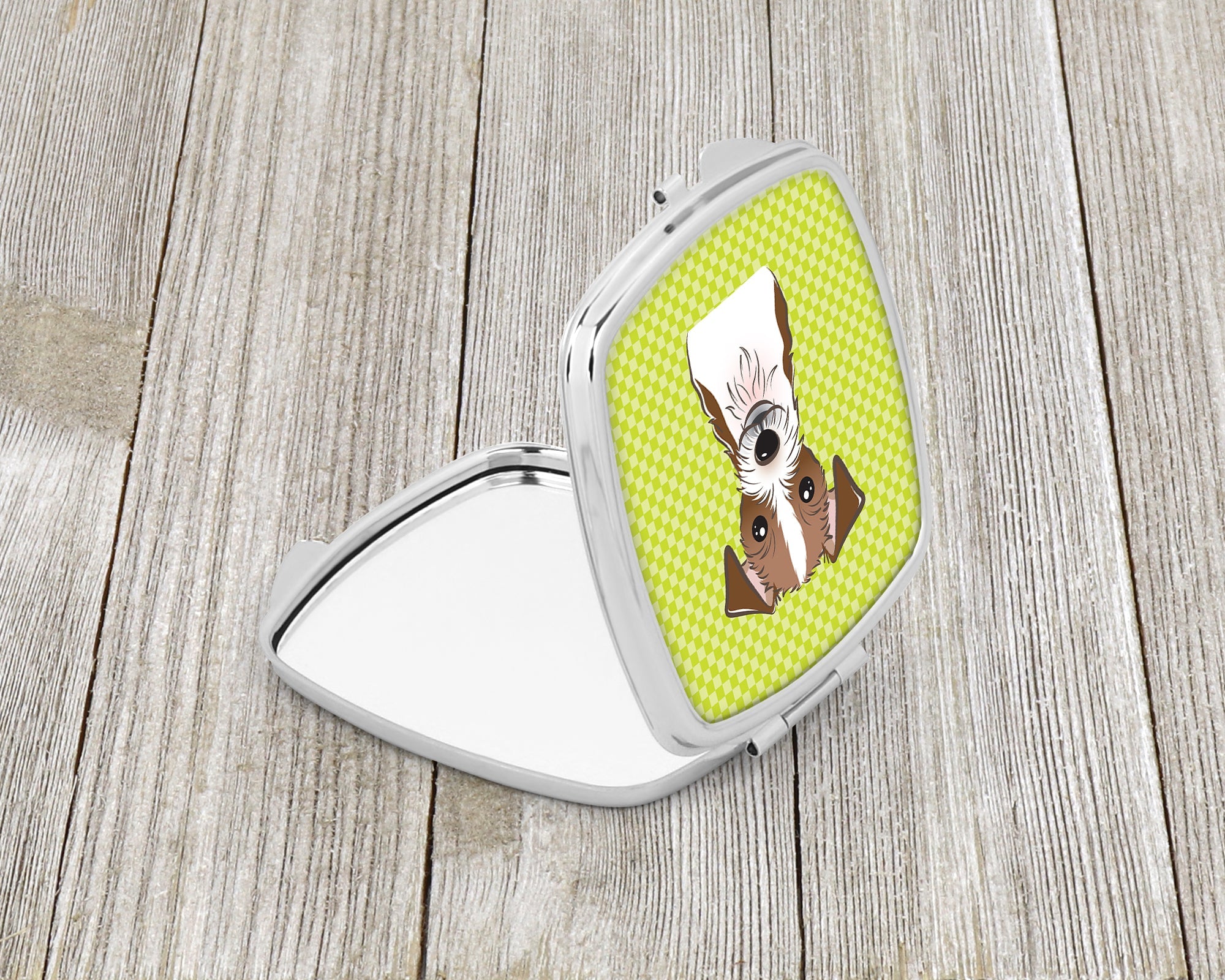 Decorate your space with our Jack Russell Terrier artwork on a Compact Mirror. Introducing our Square Compact Mirror, a blend of elegance, functionality, and compactness, perfect for on-the-go touch-ups. This Silvertone metal mirror, with dimensions of 2.75 inches x 3 inches x .3 inches, fits effortlessly into your purse, handbag, or pocket, ensuring that you can check your appearance anytime, anywhere. Our compact mirror stands out with its eye-catching artwork on the front, adding a dash of style to this practical accessory. It is more than just a mirror; it's a statement piece that reflects your personality and aesthetic. When opened, this compact reveals two mirrors inside, doubling your perspective for precise touch-ups. The Silvertone metal construction ensures durability while maintaining a lightweight feel, making it an ideal everyday carry item. Whether you're rushing to a meeting, prepping for a dinner date, or just need a quick check on your look, our Square Compact Mirror is your reliable companion. Experience the perfect blend of style and practicality with this must-have accessory.