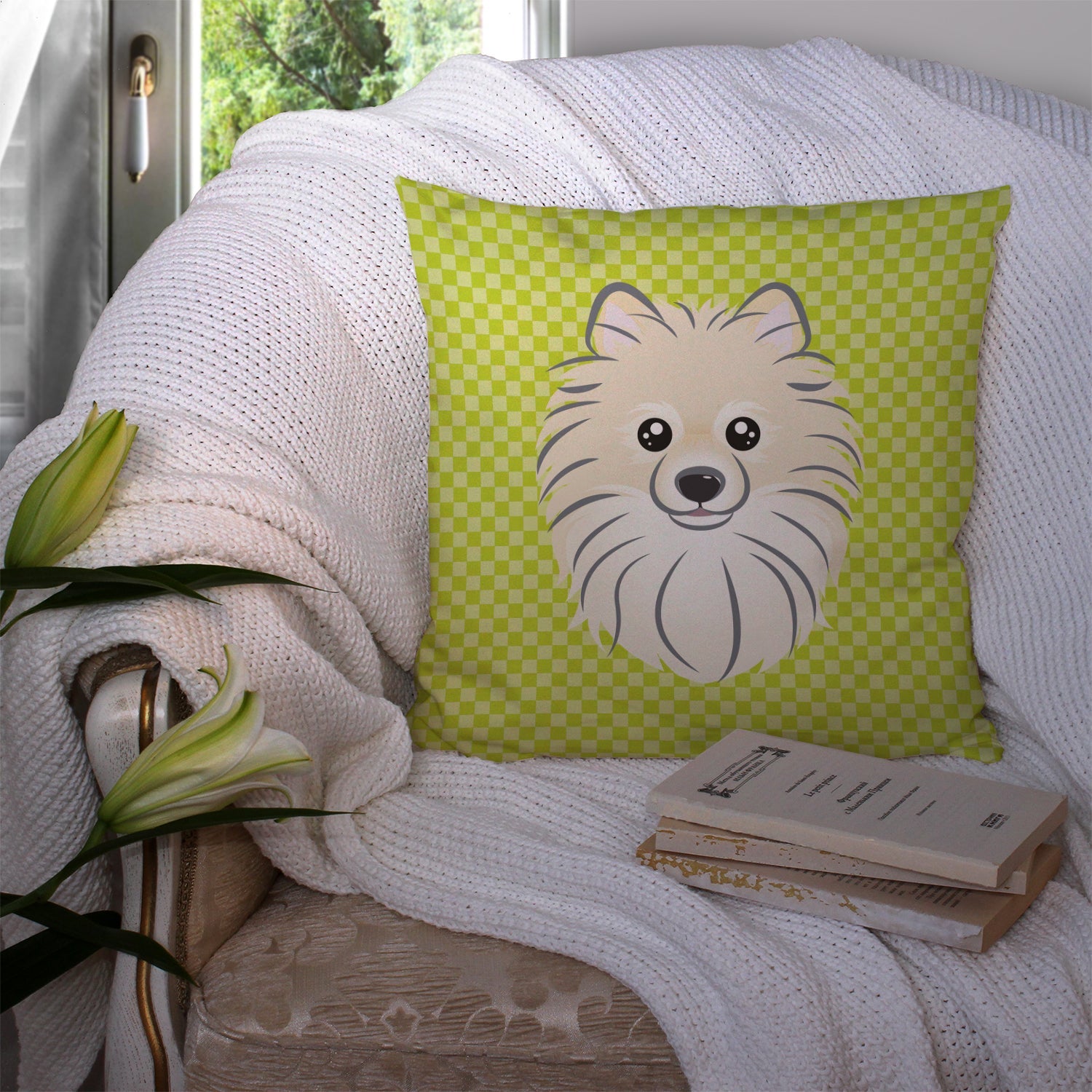 Checkerboard Lime Green Pomeranian Canvas Throw Pillow - 14x14 Decorative Pillow – Art for Your Home & Patio BB1269PW1414