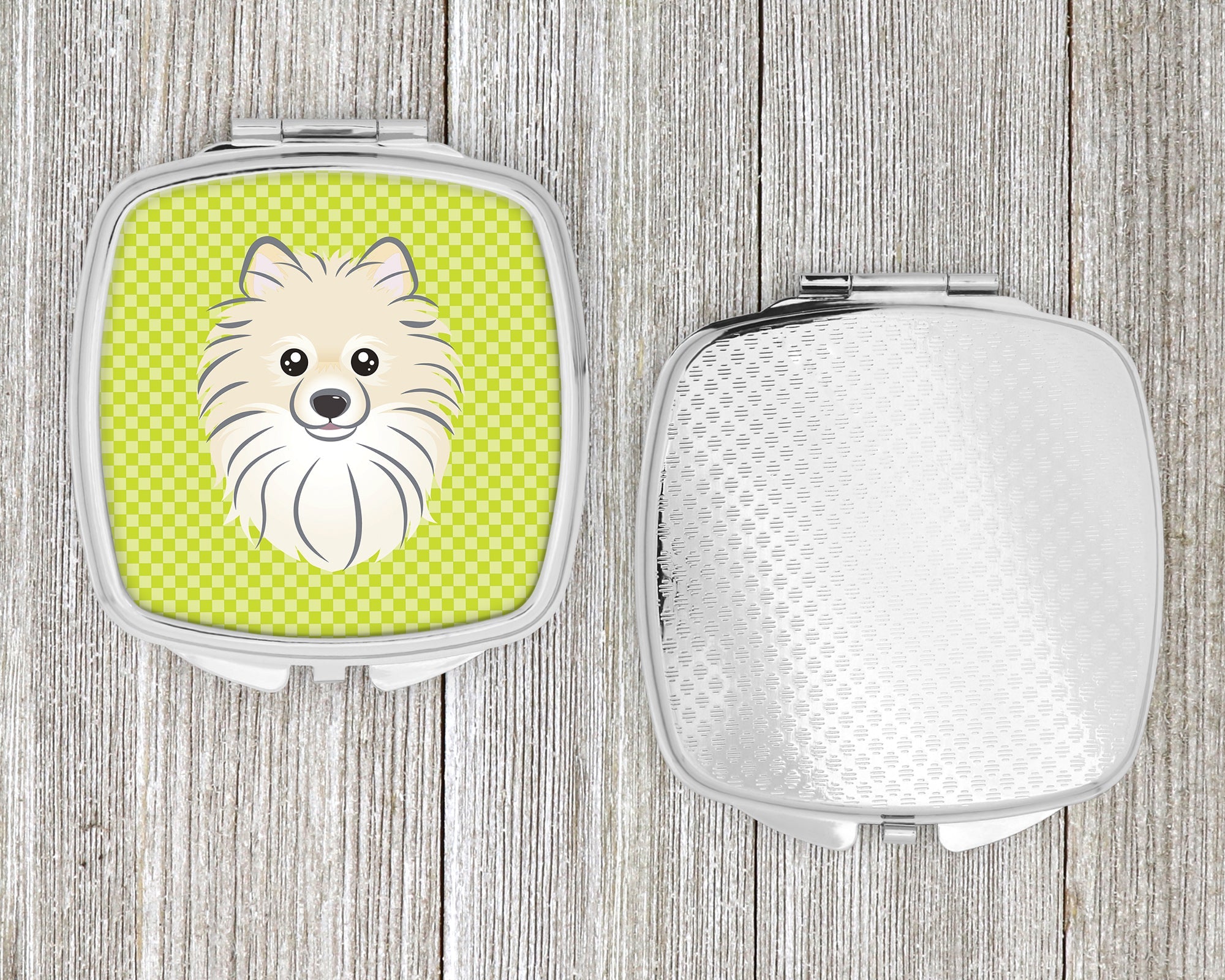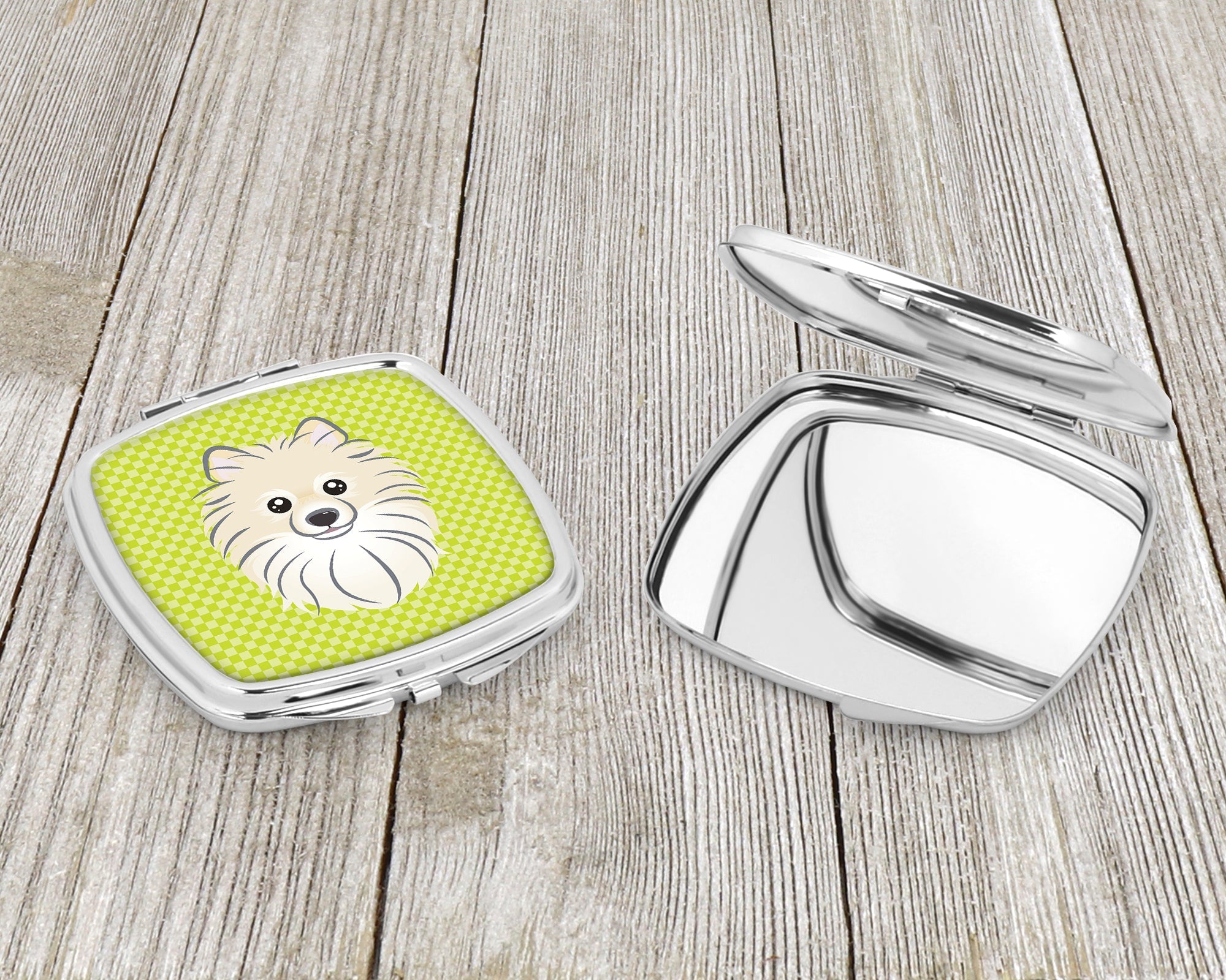 Checkerboard Lime Green Pomeranian Compact Mirror – Stylish Purse Mirror with Artistic Covers BB1269SCM