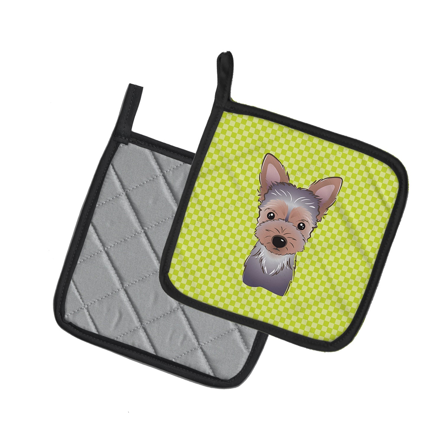 Checkerboard Lime Green Yorkie Puppy Pot Holders - Set of 2 - Heat-Resistant Kitchen Essentials BB1294PTHD