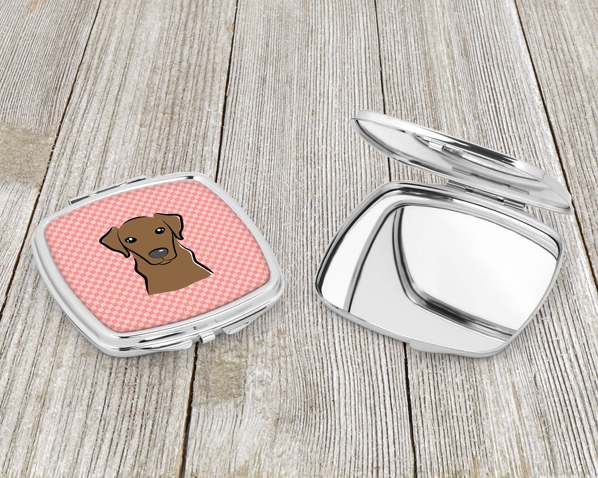 Checkerboard Pink Chocolate Labrador Compact Mirror – Stylish Purse Mirror with Artistic Covers BB1234SCM