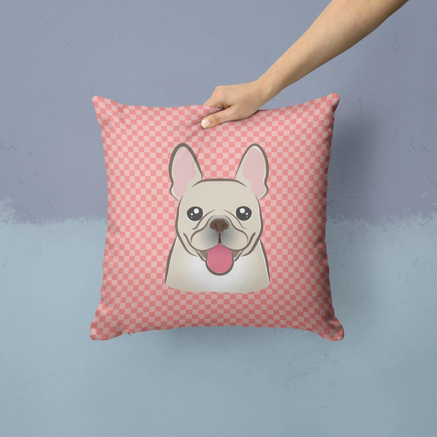 Checkerboard Pink French Bulldog Canvas Throw Pillow - 14x14 Decorative Pillow – Art for Your Home & Patio BB1238PW1414