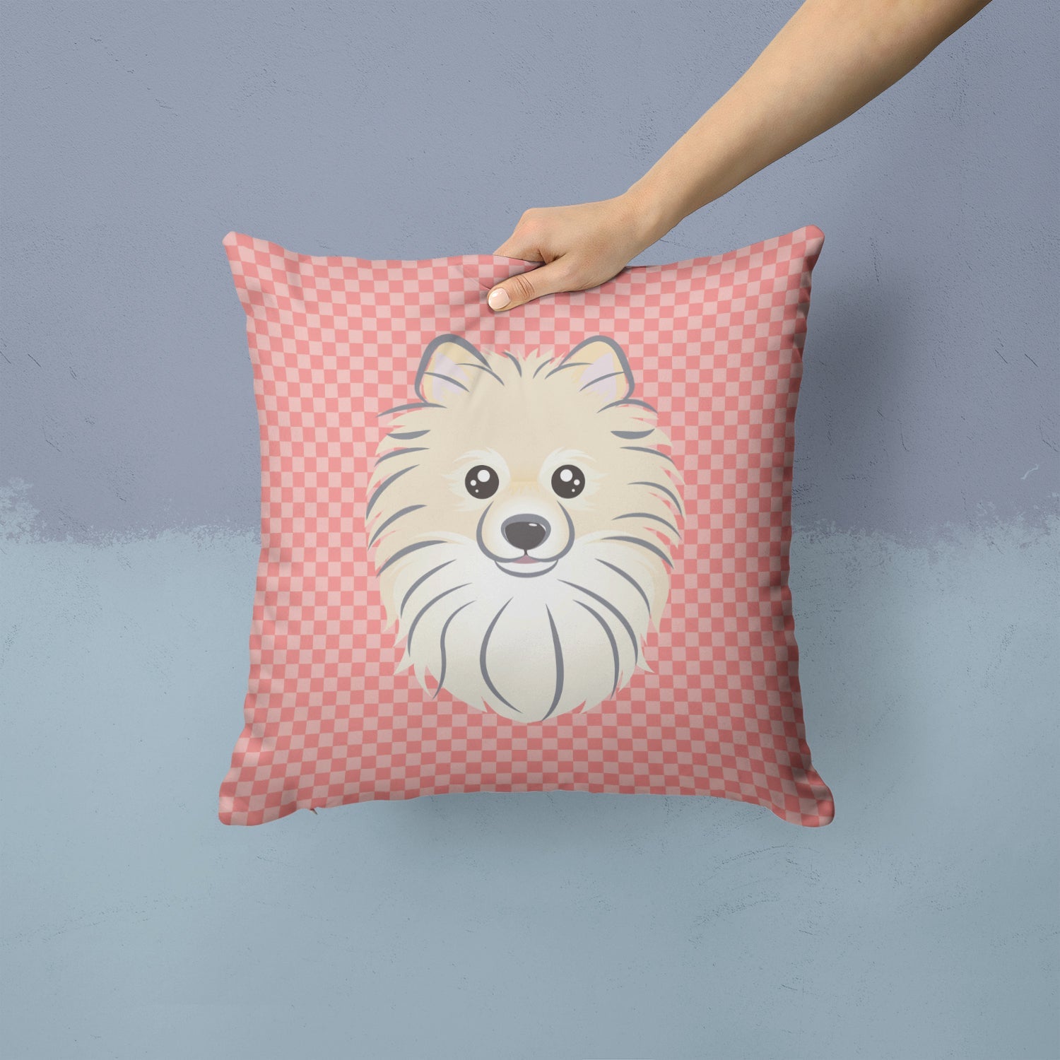 Checkerboard Pink Pomeranian Canvas Throw Pillow - 14x14 Decorative Pillow – Art for Your Home & Patio BB1207PW1414