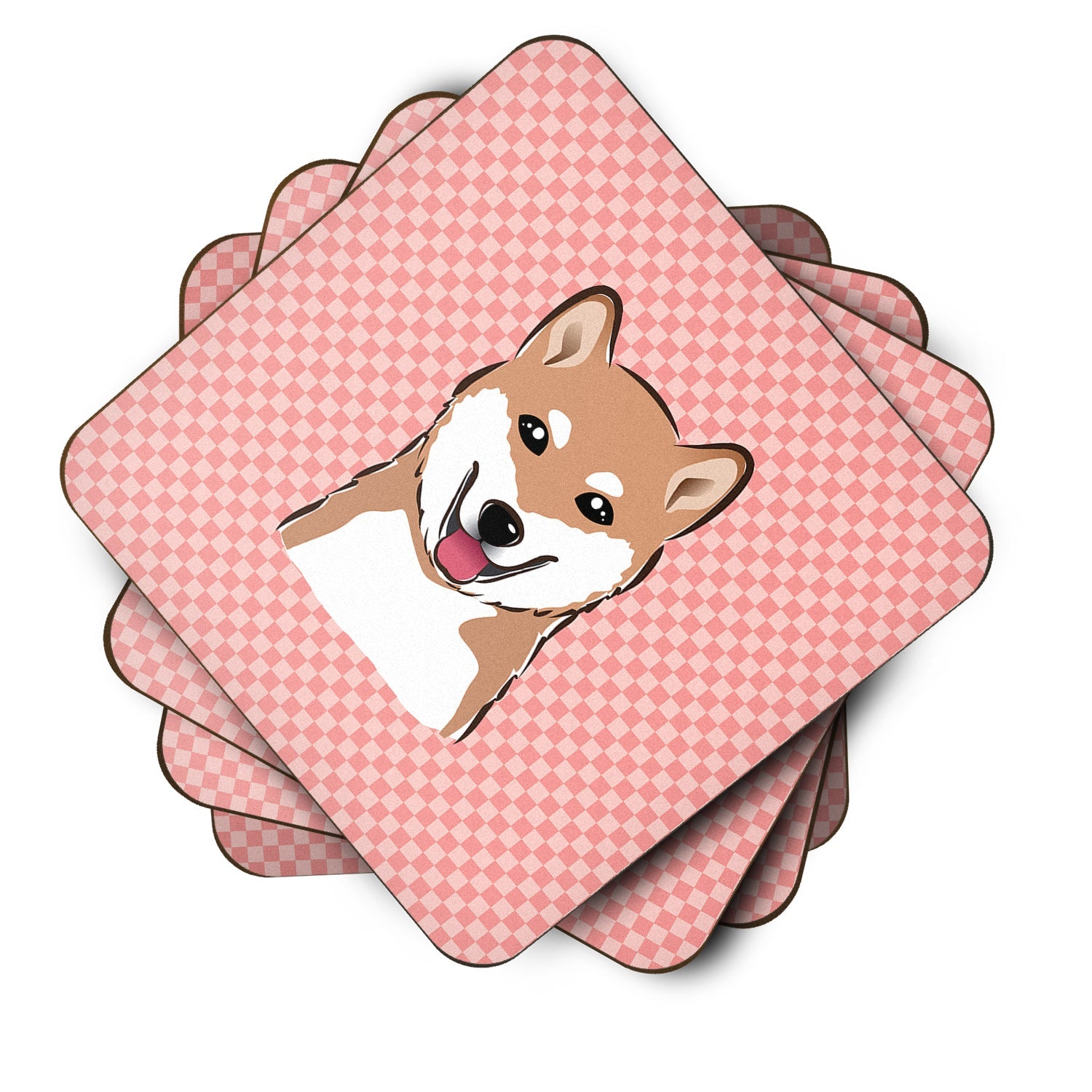 Checkerboard Pink Shiba Inu Coasters - Set of 4 Lightweight Foam, Absorbent Drink Coasters BB1225FC