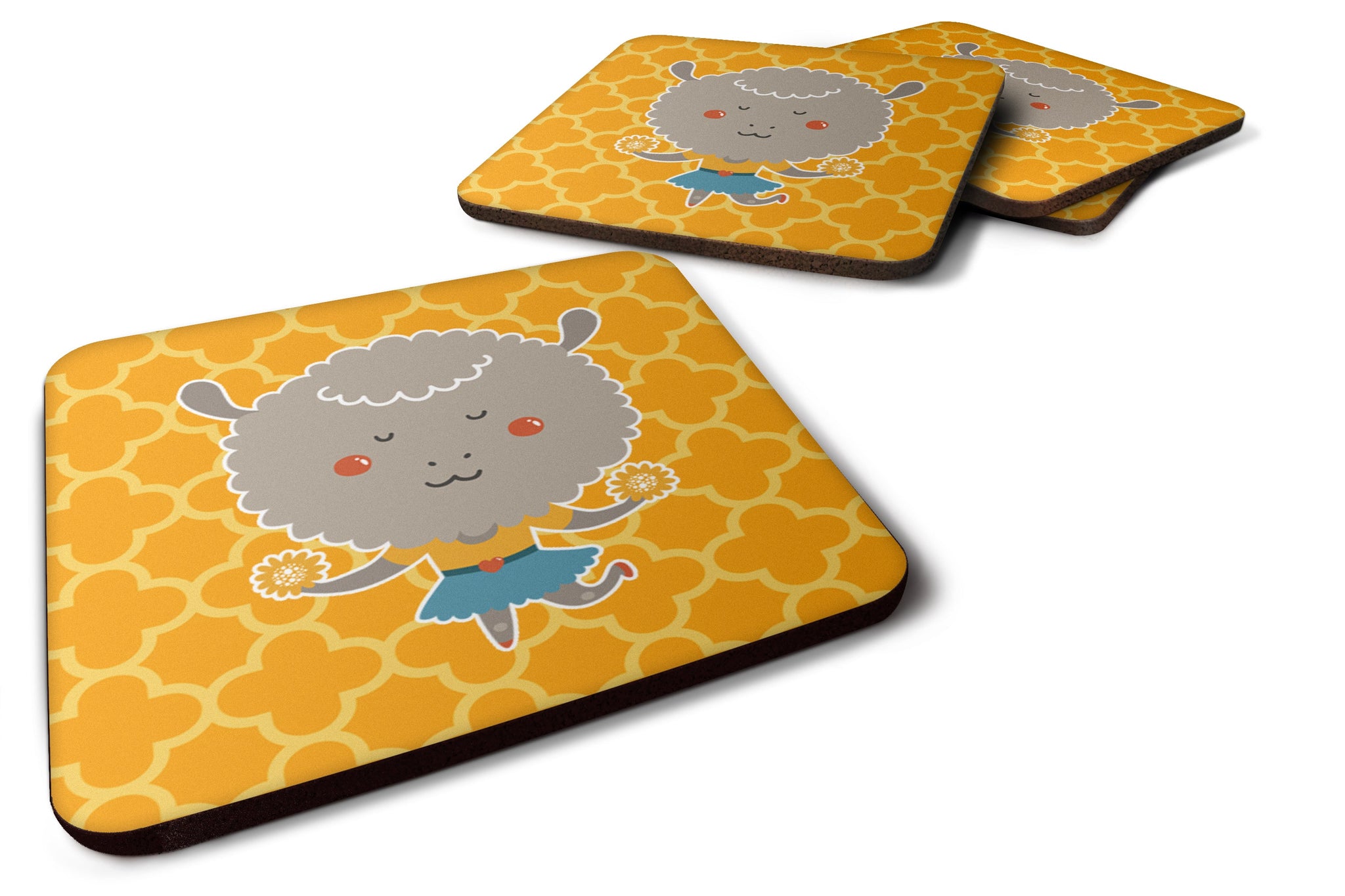 Decorate your space with our Sheep artwork on a Coaster set. Presenting our Set of 4 Foam Coasters, a stylish and practical addition to your table setting. Each square coaster, measuring 3 1/2 inches by 3 1/2 inches, is perfectly sized to accommodate various drinkware, from coffee mugs to tumblers. These coasters stand out with their full-color artwork, permanently dyed onto the material for a vibrant and fade-resistant finish. They're not just functional, they're a fashionable statement, adding a touch of flair to any gathering or event. Our foam coasters serve a dual purpose - they protect your table from water stains and are perfect for both hot and cold drinks. The material used is similar to that of our high-quality mouse pads, ensuring durability and heat resistance. These coasters are easy to maintain - simply wash them in the top of your dishwasher and lay flat to dry. The design won't come off, ensuring they retain their vivid colors for years. Pair them with one of our insulated coolers or huggers for a cohesive, thoughtful gift set. Enhance your beverage experience with our Set of 4 Foam Coasters.