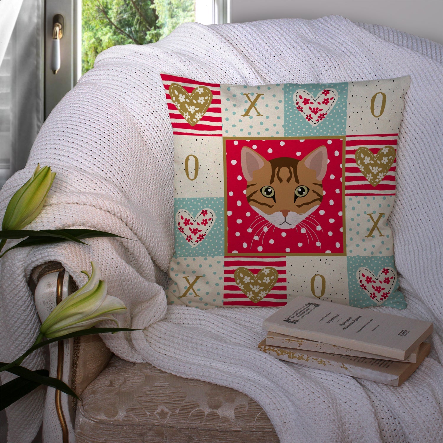 Decorate your space with our Valentine's Day Cheetoh artwork on a Pillow. Add a touch of vibrancy and comfort to your outdoor seating with Caroline's Treasures Fabric Decorative Pillow. Measuring approximately 14 inches by 14 inches, this outdoor pillow is crafted to elevate the appeal of your patio furniture, infusing it with vivid color and artistic flair. The pillow includes a 100% Polyester Fabric sham filled with a quality pillow form to provide superior comfort. Innovatively made from our brand new material, specifically woven for its water resistance, this pillow is designed for durability. The soft canvas fabric offers versatility in use, fit for your indoor couch or your outdoor patio, porch, or veranda. The fabric is dyed with colorfast dyes built for resilience against weather conditions, ensuring the pillow retains its beauty over time. Constructed by sewing three fabric pieces to create a sham, the polyester insert is then nestled inside to form the pillow, resulting in an overstuffed pillow that maintains its shape. Both the sham and the pillow insert are proudly made in the United States. As the pillows are handcrafted, there may be minor variations in size, further enhancing their unique charm. Experience comfort in style with Caroline's Treasures Fabric Decorative Pillow.