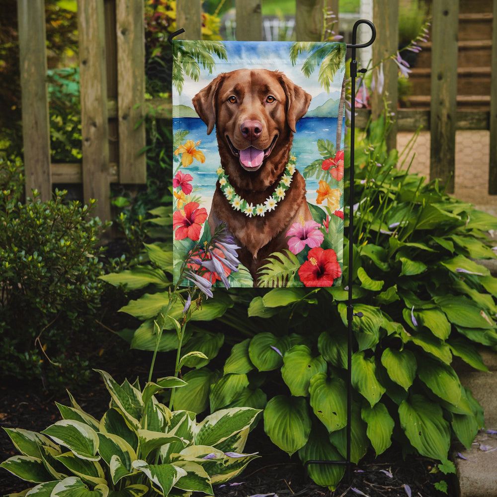 Decorate your space with our Chesapeake Bay Retriever artwork on a Garden Flag. Bring a bit of Summer into your home with a Summer Garden Flag. Enhance the beauty of your garden, patio, or yard with Caroline's Treasures Decorative Garden Flag, proudly made in the USA. Crafted from two pieces of thick, double-sided polyester fabric, this 2-ply garden flag is designed to withstand various weather conditions, making it water-resistant and weatherproof. Featuring correctly readable words on both sides, this garden flag offers a delightful visual experience from any angle. With its heavier weight, it stands out among other garden flags, ensuring stability and durability even in wind, rain, and snow. Measuring approximately 11 1/4 inches by 15 1/2 inches, this flag allows you to personalize your outdoor decor. It comes with a 1 1/2-inch sleeve sewn in, allowing easy attachment to any standard garden flag stand or garden size porch hanger (sold separately). Make a statement in your outdoor space with Caroline's Treasures Decorative Garden Flag, a vibrant and high-quality flag that adds color and personality to your surroundings. Proudly made in the USA, it's a symbol of quality craftsmanship and attention to detail.