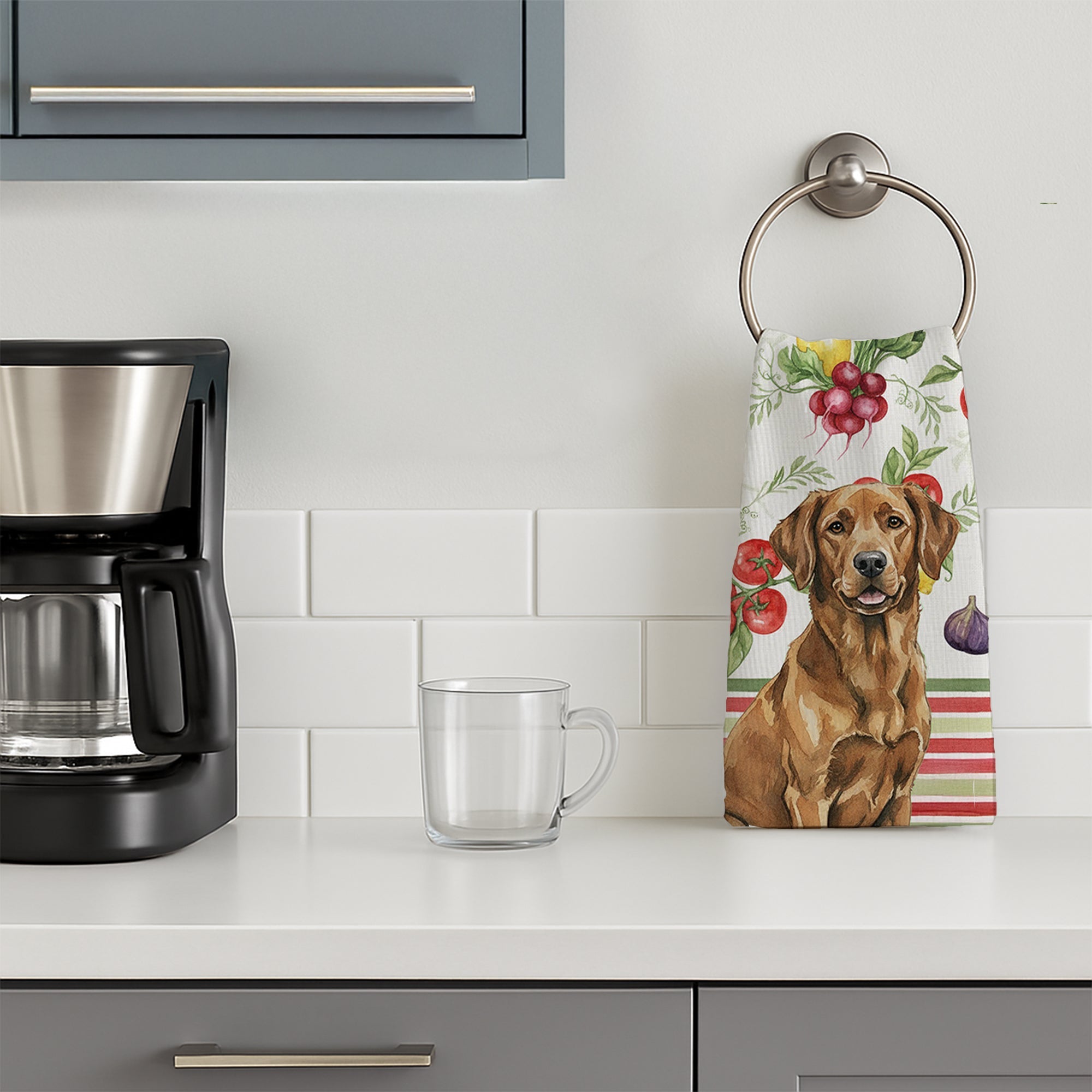 Kitchen Towel featuring breed specific Chesapeake Bay Retriever artwork. Bring cozy everyday charm to your sink or powder room with a plush velour towel featuring original watercolor artwork. The front is a soft, color-rich minky polyester that polishes glassware to a brilliant shine; the back is 100% white cotton terry loop for quick absorbency on hands, dishes, and counters. Artwork is dyed into the fibers for lasting color that won’t crack or peel. Finished edges keep the shape wash after wash. Size: 15" x 25". Machine wash; tumble dry low. Designed and printed in the USA.