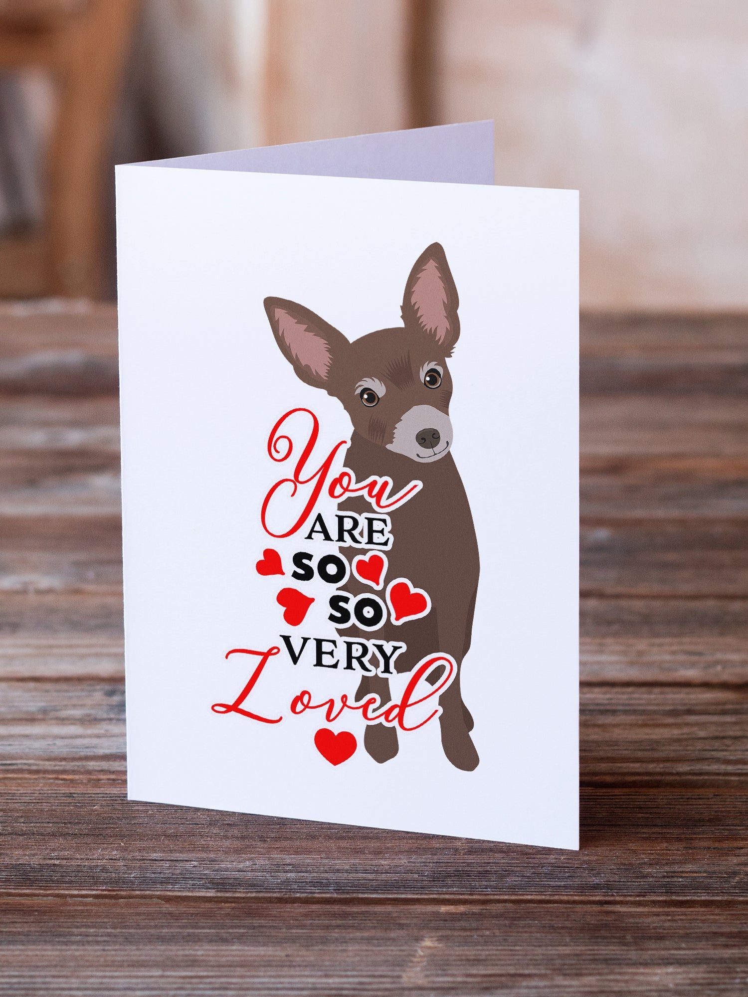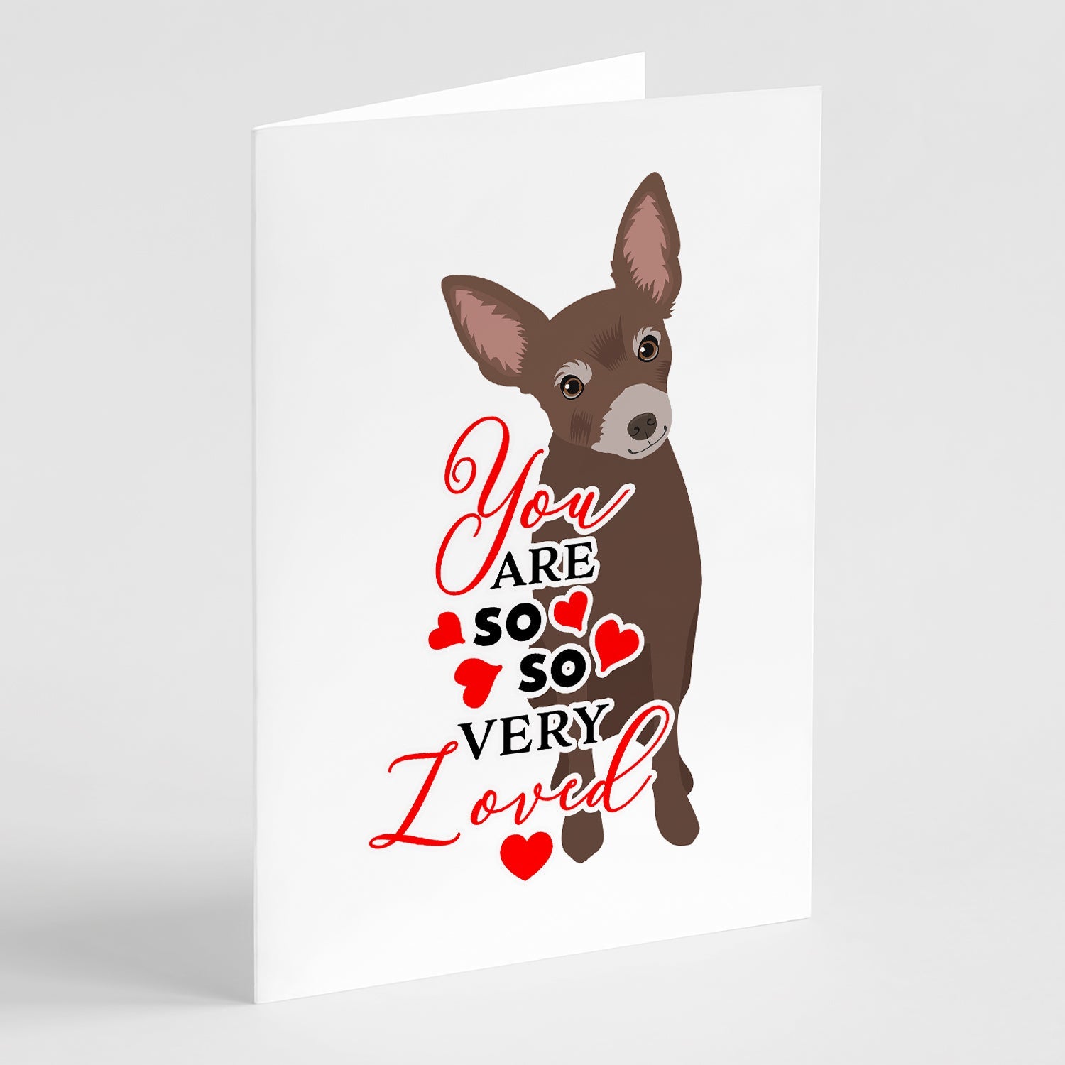 Decorate your space with our Valentine's Day Chihuahua artwork on a . Celebrate special moments with Caroline's Treasures Printed Greeting Card Pack. This pack includes eight beautifully folded 5x7 cards, accompanied by eight matching white envelopes. With blank interiors, these cards provide ample space for your personalized messages and heartfelt holiday greetings. Each card features captivating full-color artwork, meticulously printed in our facility on high-quality 80 lb cover stock or 216 GSM. The super smooth finish of the white cards enhances the visual impact of the artwork, creating a truly stunning presentation. Designed by our talented in-house artists or licensed artists, the artwork on these cards showcases their creativity and attention to detail. From vibrant illustrations to captivating designs, each card tells its own unique story. Whether it's for birthdays, anniversaries, holidays, or any special occasion, Caroline's Treasures Greeting Card Pack is the perfect way to convey your heartfelt sentiments. Share joy, love, and warm wishes with these exquisite cards and make every moment unforgettable.