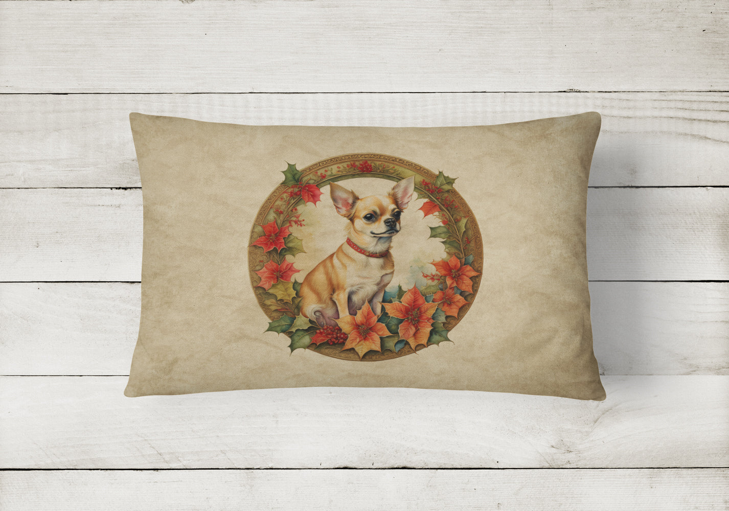 Decorate your space with our Christmas Chihuahua artwork on a Pillow. Bring a bit of Winter into your home with a Winter Pillow. Embrace the fusion of comfort and style with Caroline's Treasures Fabric Decorative Pillow. This 12x16 inch outdoor pillow is designed to complement your patio furniture, adding a splash of color and artistry to your outdoor setting. Constructed with a 100% Polyester Fabric pillow sham filled with a plush pillow form, this cushion is as comfortable as it is durable. Our outdoor pillow utilizes a novel fabric, meticulously woven for enhanced water resistance. This soft canvas material is equally suited for your indoor couch as well as outdoor settings such as the patio, porch, or veranda. To ensure enduring vibrance, we employ colorfast dyes resistant to fading even when subjected to weather elements. The making of this pillow involves the delicate sewing together of three fabric pieces to create a sham, into which a polyester insert is carefully placed. The result is an overstuffed pillow that tenaciously holds its shape. With both the sham and the pillow insert crafted in the United States, these handmade pillows are a testament to superior local craftsmanship. Note that as these pillows are handmade, sizes may slightly vary, enhancing their unique appeal. Enjoy comfort in style with Caroline's Treasures Fabric Decorative Pillow.