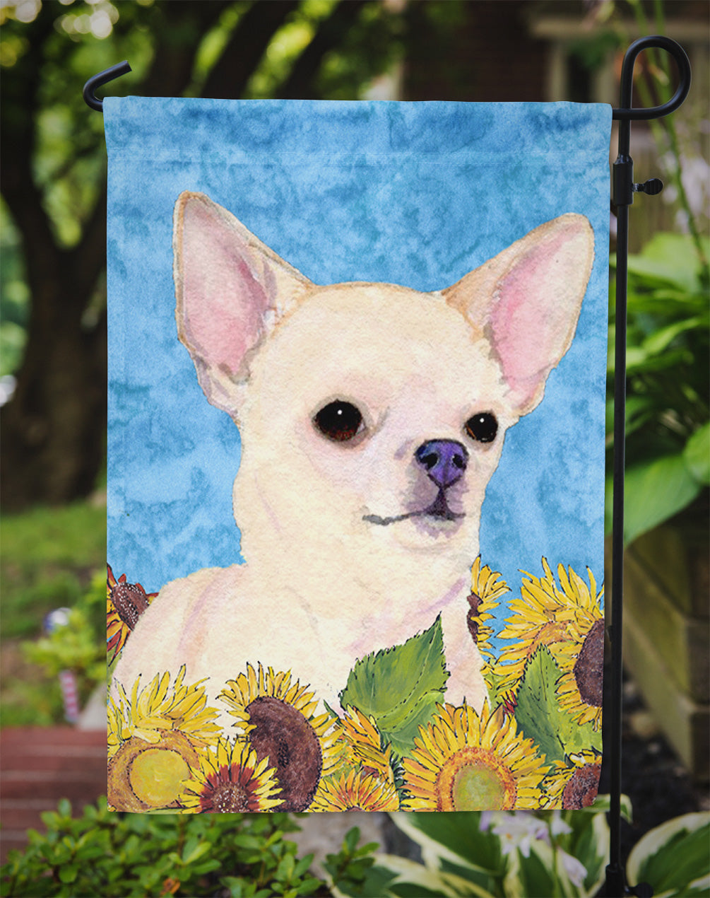 Decorate your space with our Chihuahua artwork on a Garden Flag. Bring a bit of Summer into your home with a Summer Garden Flag. Enhance the beauty of your garden, patio, or yard with Caroline's Treasures Decorative Garden Flag, proudly made in the USA. Crafted from two pieces of thick, double-sided polyester fabric, this 2-ply garden flag is designed to withstand various weather conditions, making it water-resistant and weatherproof. Featuring correctly readable words on both sides, this garden flag offers a delightful visual experience from any angle. With its heavier weight, it stands out among other garden flags, ensuring stability and durability even in wind, rain, and snow. Measuring approximately 11 1/4 inches by 15 1/2 inches, this flag allows you to personalize your outdoor decor. It comes with a 1 1/2-inch sleeve sewn in, allowing easy attachment to any standard garden flag stand or garden size porch hanger (sold separately). Make a statement in your outdoor space with Caroline's Treasures Decorative Garden Flag, a vibrant and high-quality flag that adds color and personality to your surroundings. Proudly made in the USA, it's a symbol of quality craftsmanship and attention to detail.