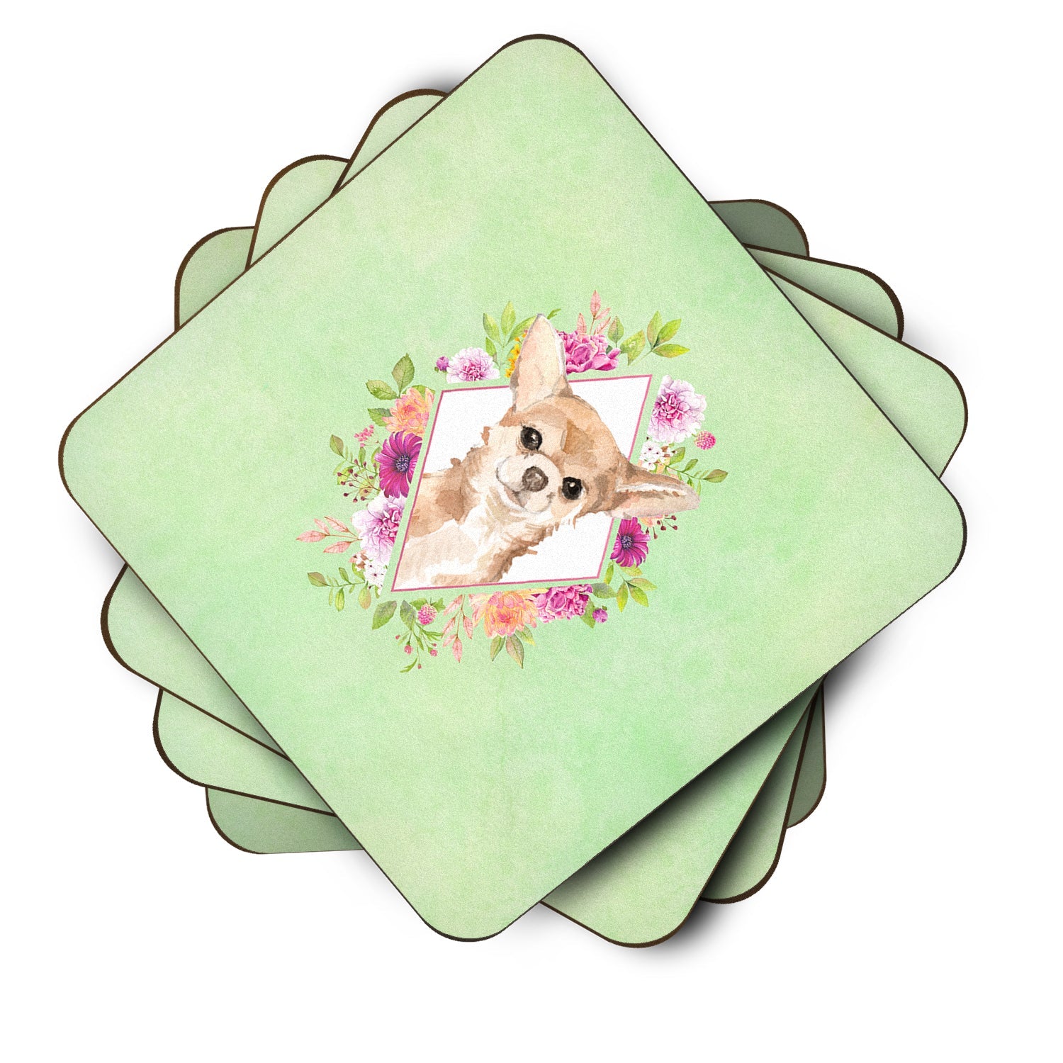 Decorate your space with our Chihuahua artwork on a Coaster set. Presenting our Set of 4 Foam Coasters, a stylish and practical addition to your table setting. Each square coaster, measuring 3 1/2 inches by 3 1/2 inches, is perfectly sized to accommodate various drinkware, from coffee mugs to tumblers. These coasters stand out with their full-color artwork, permanently dyed onto the material for a vibrant and fade-resistant finish. They're not just functional, they're a fashionable statement, adding a touch of flair to any gathering or event. Our foam coasters serve a dual purpose - they protect your table from water stains and are perfect for both hot and cold drinks. The material used is similar to that of our high-quality mouse pads, ensuring durability and heat resistance. These coasters are easy to maintain - simply wash them in the top of your dishwasher and lay flat to dry. The design won't come off, ensuring they retain their vivid colors for years. Pair them with one of our insulated coolers or huggers for a cohesive, thoughtful gift set. Enhance your beverage experience with our Set of 4 Foam Coasters.