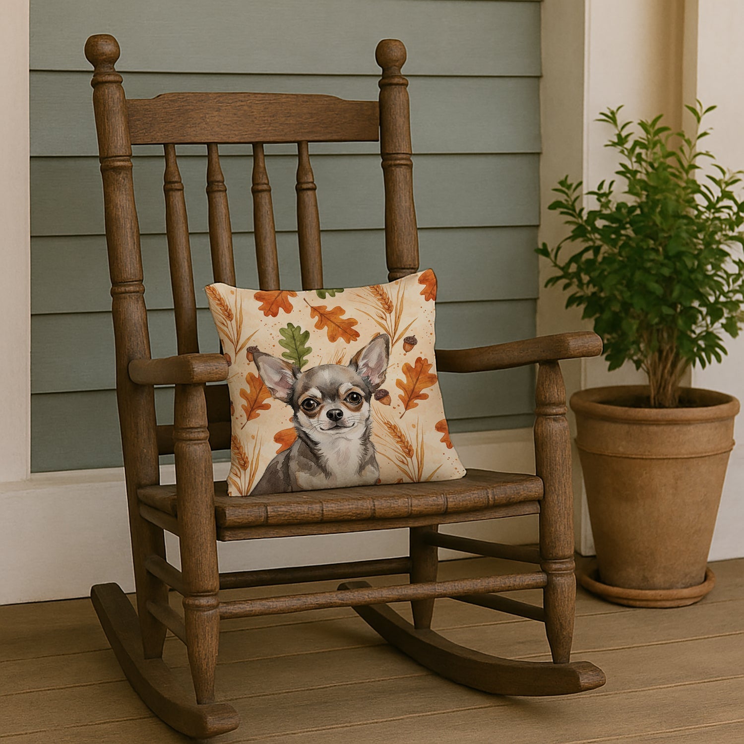 Throw Pillow featuring breed specific Chihuahua artwork. Celebrate Thanksgiving with this Thanksgiving Pillow. Add a touch of vibrancy and comfort to your outdoor seating with Caroline's Treasures Fabric Decorative Pillow. Measuring approximately 14 inches by 14 inches, this outdoor pillow is crafted to elevate the appeal of your patio furniture, infusing it with vivid color and artistic flair. The pillow includes a 100% Polyester Fabric sham filled with a quality pillow form to provide superior comfort. Innovatively made from our brand new material, specifically woven for its water resistance, this pillow is designed for durability. The soft canvas fabric offers versatility in use, fit for your indoor couch or your outdoor patio, porch, or veranda. The fabric is dyed with colorfast dyes built for resilience against weather conditions, ensuring the pillow retains its beauty over time. Constructed by sewing three fabric pieces to create a sham, the polyester insert is then nestled inside to form the pillow, resulting in an overstuffed pillow that maintains its shape. Both the sham and the pillow insert are proudly made in the United States. As the pillows are handcrafted, there may be minor variations in size, further enhancing their unique charm. Experience comfort in style with Caroline's Treasures Fabric Decorative Pillow.