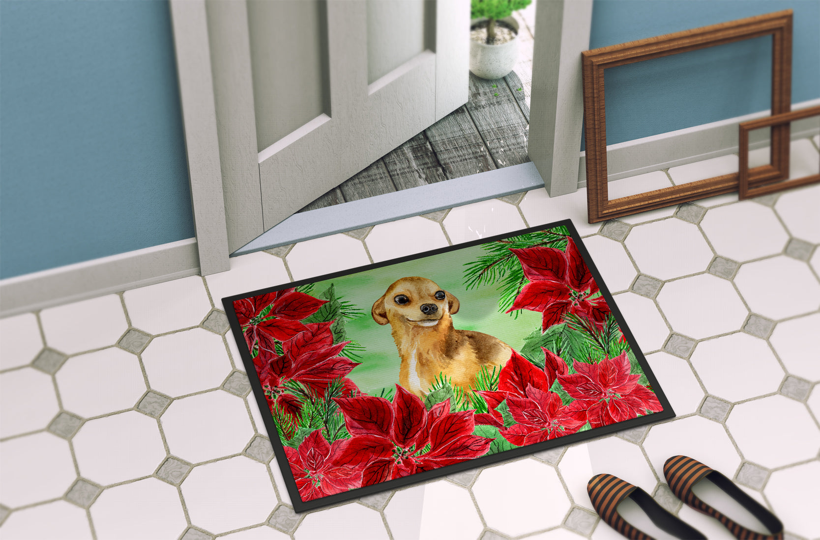 Chihuahua Poinsettas Doormat - 24x36 Decorative Floor Mat – Indoor/Outdoor Rug with Artistic Flair CK1306JMAT