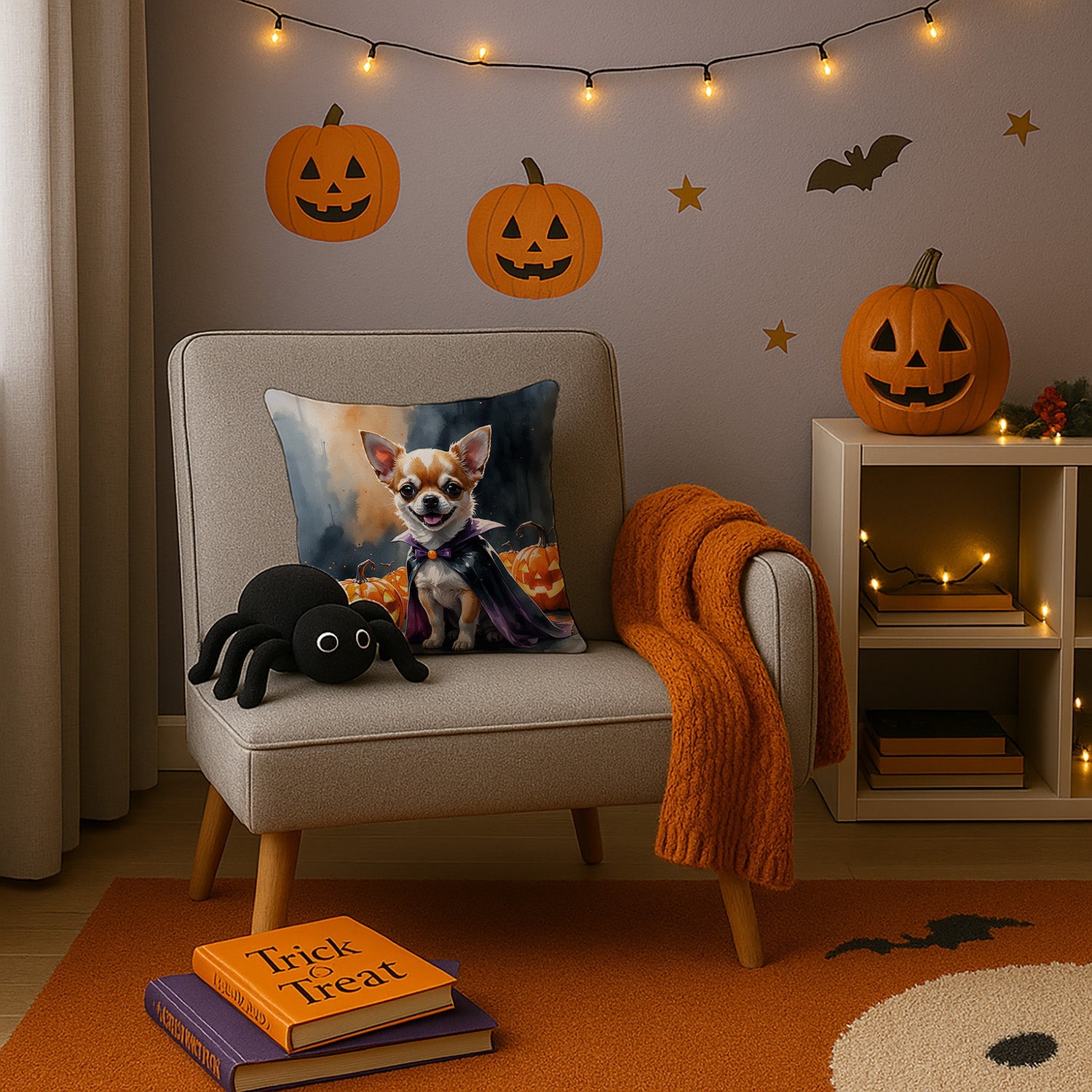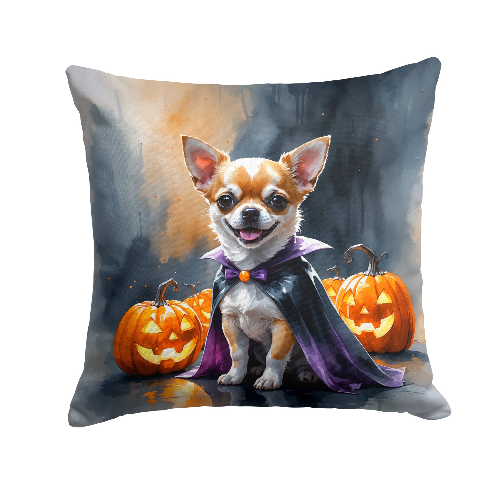 Throw Pillow featuring breed specific Chihuahua artwork. Celebrate Halloween with this Halloween Pillow. Add a touch of vibrancy and comfort to your outdoor seating with Caroline's Treasures Fabric Decorative Pillow. Measuring approximately 14 inches by 14 inches, this outdoor pillow is crafted to elevate the appeal of your patio furniture, infusing it with vivid color and artistic flair. The pillow includes a 100% Polyester Fabric sham filled with a quality pillow form to provide superior comfort. Innovatively made from our brand new material, specifically woven for its water resistance, this pillow is designed for durability. The soft canvas fabric offers versatility in use, fit for your indoor couch or your outdoor patio, porch, or veranda. The fabric is dyed with colorfast dyes built for resilience against weather conditions, ensuring the pillow retains its beauty over time. Constructed by sewing three fabric pieces to create a sham, the polyester insert is then nestled inside to form the pillow, resulting in an overstuffed pillow that maintains its shape. Both the sham and the pillow insert are proudly made in the United States. As the pillows are handcrafted, there may be minor variations in size, further enhancing their unique charm. Experience comfort in style with Caroline's Treasures Fabric Decorative Pillow.