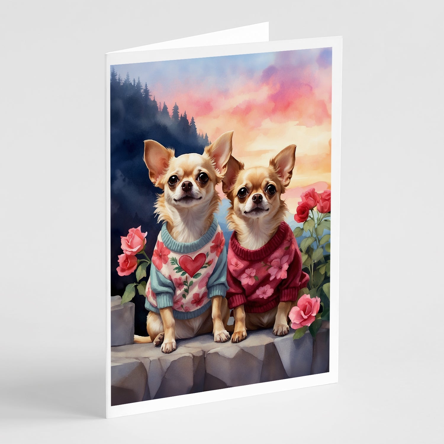 Decorate your space with our Valentine's Day Chihuahua artwork on a . Celebrate special moments with Caroline's Treasures Printed Greeting Card Pack. This pack includes eight beautifully folded 5x7 cards, accompanied by eight matching white envelopes. With blank interiors, these cards provide ample space for your personalized messages and heartfelt holiday greetings. Each card features captivating full-color artwork, meticulously printed in our facility on high-quality 80 lb cover stock or 216 GSM. The super smooth finish of the white cards enhances the visual impact of the artwork, creating a truly stunning presentation. Designed by our talented in-house artists or licensed artists, the artwork on these cards showcases their creativity and attention to detail. From vibrant illustrations to captivating designs, each card tells its own unique story. Whether it's for birthdays, anniversaries, holidays, or any special occasion, Caroline's Treasures Greeting Card Pack is the perfect way to convey your heartfelt sentiments. Share joy, love, and warm wishes with these exquisite cards and make every moment unforgettable.