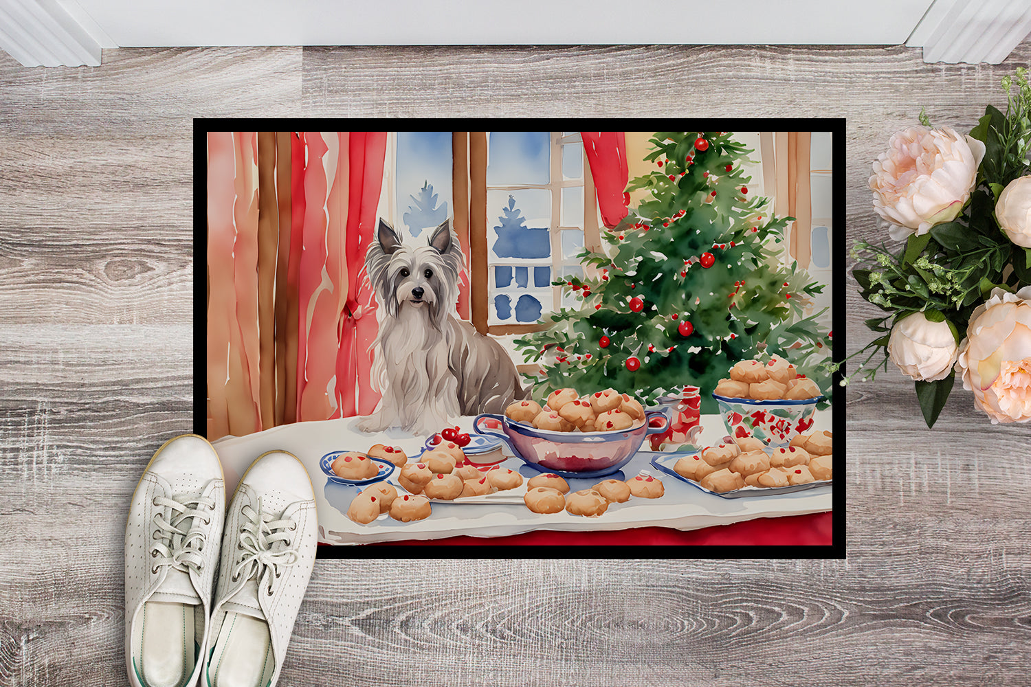 Decorate your space with our Christmas Chinese Crested artwork on a Doormat. Welcome your guests in style with our Artwork Door Mat, designed to withstand almost any weather condition. This mat, measuring approximately 18 by 27 inches, is held together by durable black binding tape. Its top layer, composed of polyester felt, is dyed with the eye-catching image you see on the mat. A few layers below provide the mat with stability, while its rubber bottom is stamped to help prevent slipping and ensures safety. Our mat works wonderfully as both an indoor or outdoor door mat. For cleaning, simply hose it off with water or use a power washer - no need for any cleaner that produces suds. Avoid scrubbing with a brush, instead, opt for the vacuum on floor setting. Designed manufactured and printed in the USA, this mat is a perfect addition to your porch, outdoor kitchen, entryway, or any indoor space. Its unique design makes it a charming decorative rug that greets your guests and adds a stylish touch to your home decor.