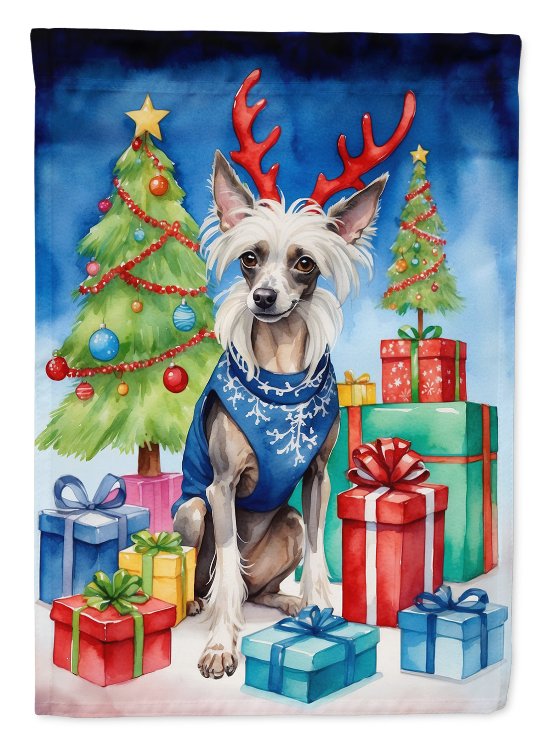 Garden Flag featuring breed specific Chinese Crested artwork. Celebrate Christmas with this Christmas Garden Flag. Enhance the beauty of your garden, patio, or yard with Caroline's Treasures Decorative Garden Flag, proudly made in the USA. Crafted from two pieces of thick, double-sided polyester fabric, this 2-ply garden flag is designed to withstand various weather conditions, making it water-resistant and weatherproof. Featuring correctly readable words on both sides, this garden flag offers a delightful visual experience from any angle. With its heavier weight, it stands out among other garden flags, ensuring stability and durability even in wind, rain, and snow. Measuring approximately 11 1/4 inches by 15 1/2 inches, this flag allows you to personalize your outdoor decor. It comes with a 1 1/2-inch sleeve sewn in, allowing easy attachment to any standard garden flag stand or garden size porch hanger (sold separately). Make a statement in your outdoor space with Caroline's Treasures Decorative Garden Flag, a vibrant and high-quality flag that adds color and personality to your surroundings. Proudly made in the USA, it's a symbol of quality craftsmanship and attention to detail.