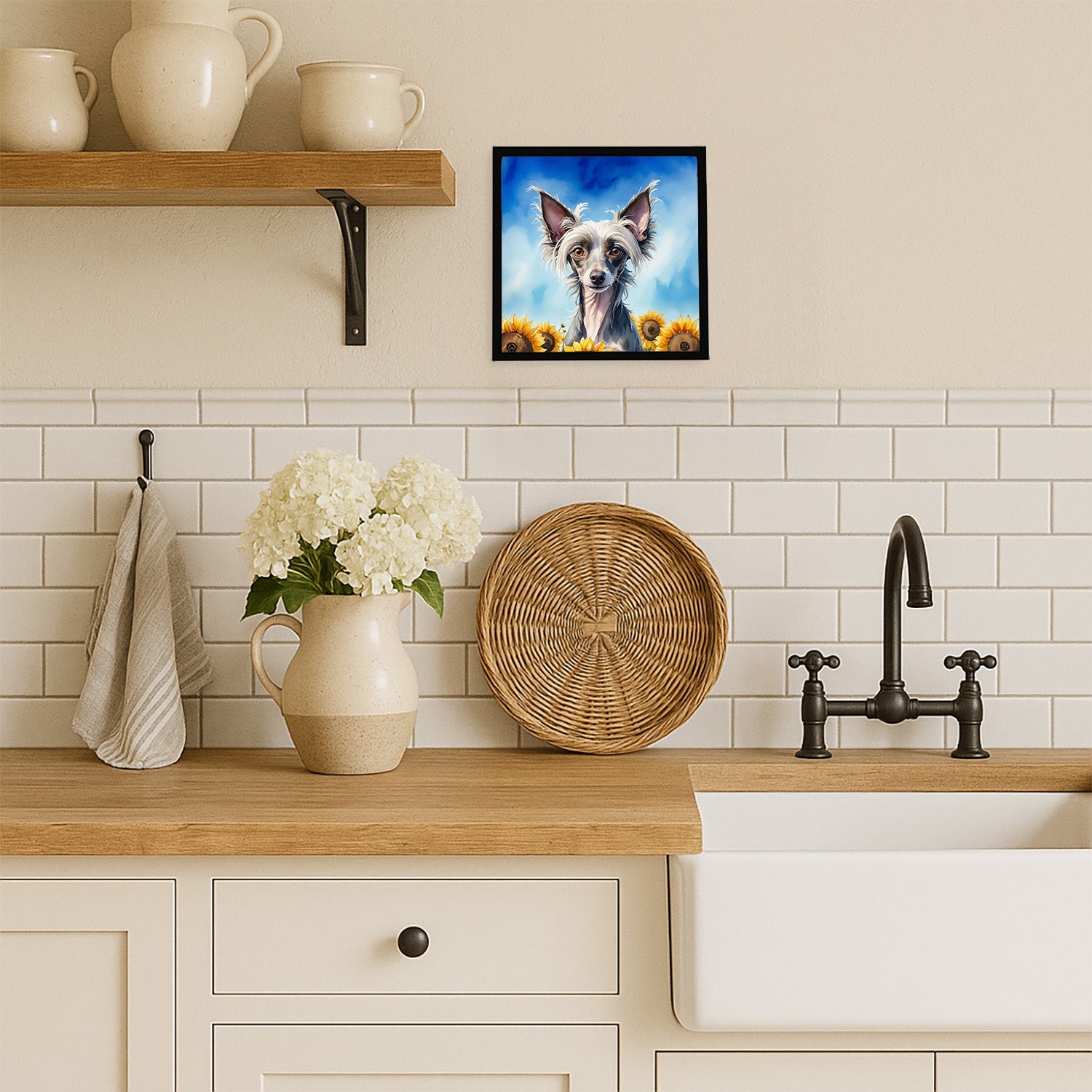 Framed Metal Print featuring breed specific Chinese Crested artwork. Looking for wall art that’s stylish, safe, and made to last? Our 8x8 Framed Metal Prints are designed with modern living in mind. Each piece features original artwork printed on durable aluminum, set in a sleek frame that measures 3/4 inch deep for a clean, contemporary finish. Unlike glass prints, these are lightweight, shatter-free, and family-safe. Perfect for kitchens, bathrooms, or covered porches where traditional décor might not hold up. The built-in sawtooth hanger molded into the back makes it easy to hang right out of the box—just use your own nails or screws. Cleaning is simple too: a quick wipe with a damp cloth and mild soap keeps your artwork looking vibrant. Proudly made in Alabama, every print supports our community of artists while adding personality and charm to your home.