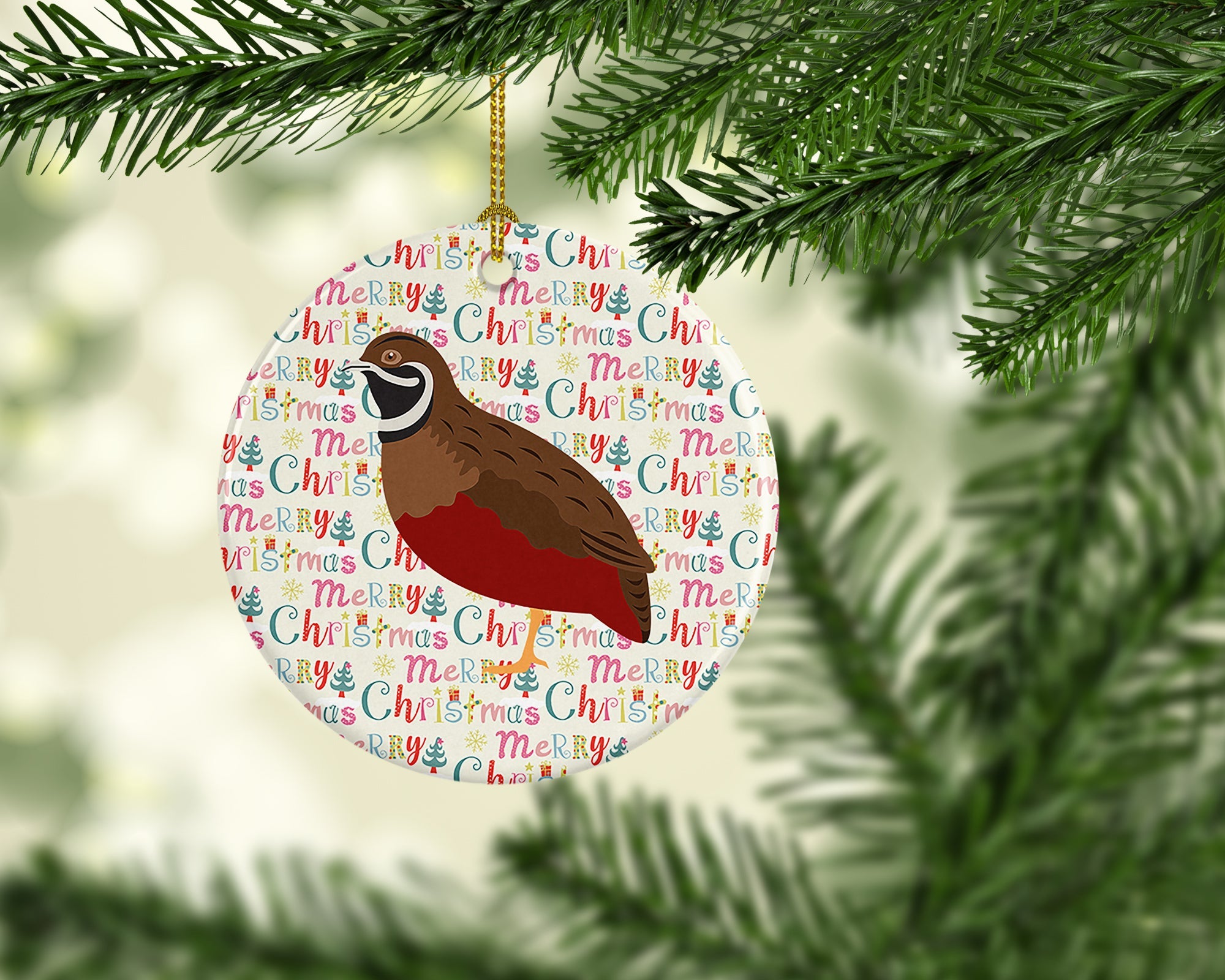 Decorate your space with our Christmas Chinese Painted or King Quail artwork on a Ornament. Add a touch of personalized charm to your Christmas tree this holiday season with our Ceramic Ornament. Measuring 2.8125 inches in diameter, this round porcelain ornament beautifully reflects your festive lights, enhancing your holiday decor. The gloss surface sets off the vibrant, full-color artwork contributed by one of our talented artists, bringing a pop of color and joy to your tree. This Ceramic Ornament doesn't stop at being merely decorative. The white back is designed for personalization. Write a heartfelt message, mark a special year, or inscribe a date with a paint pen or a permanent marker to create a treasured memento. Please ensure you allow any personalization to dry thoroughly before handling to maintain the pristine finish. Included with the ornament is a delicate gold cord for easy hanging. Made in the USA, this Ceramic Ornament makes an exceptional gift for a pet sitter, teacher, family member, or anyone you wish to share a little Christmas magic with. With its blend of style, charm, and personal touch, it's a meaningful addition to any Christmas tree.
