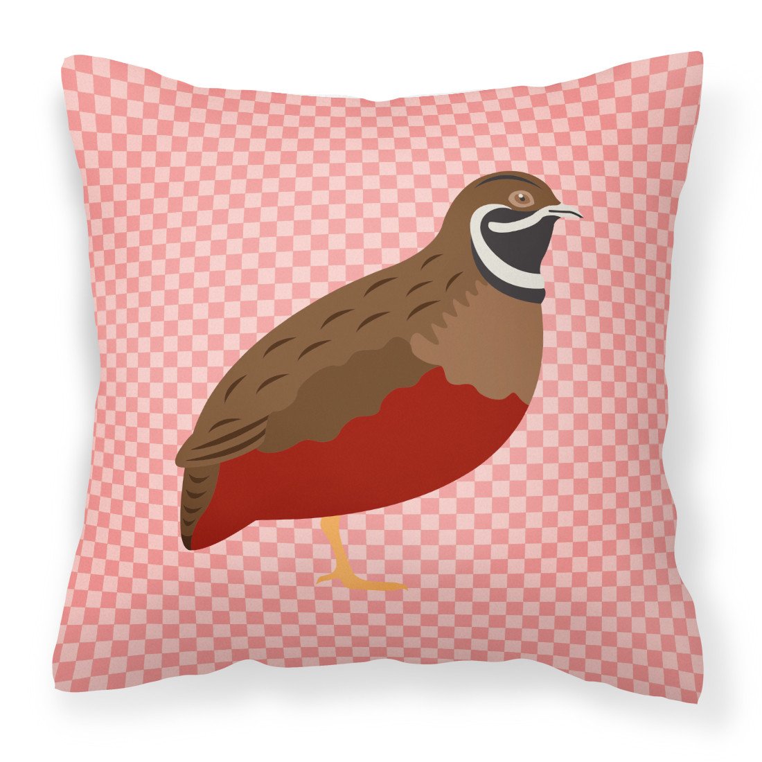 Chinese Painted or King Quail Pink Check Fabric Decorative Pillow BB7956PW1818